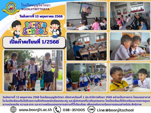 วันอังคารที่ 13 พฤษภาคม 2568 โรงเรียนบุญจิตวิทยา เปิดภาคเรียนที่ 1 ประจำปีการศึกษา 2568 อย่างเป็นทางการ โดยบรรยากาศ