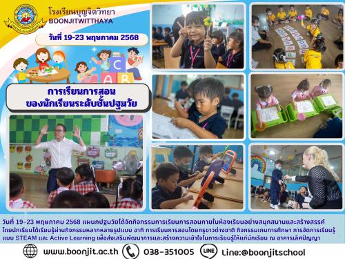 วันที่ 19–23 พฤษภาคม 2568 แผนกปฐมวัยได้จัดกิจกรรมการเรียนการสอนภายในห้องเรียนอย่างสนุกสนานและสร้างสรรค์ โดยนักเรียนได้เรียนรู้ผ่านกิจกรรมหลากหลายรูปแบบ