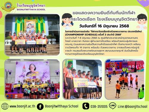 วันจันทร์ที่ 16 มิถุนายน 2568 ในการเข้าร่วมการแข่งขัน "ก็ฬากระโดดเชือกชิงถ้วยพระราชทาน ประเภทมือใหม่ (Championship schedule) ครั้งที่ 3 ประจำปี 2568"
