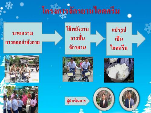 โครงการจักรยานไอศครีม นวตกรรมการออกกำลังกาย โดยการปั่นจักรยาน นำพลังงานจากการปั่นจักรยาน มาปั่นไอศครีม ได้ทั้งสุขภาพ และขนมเลิศรส