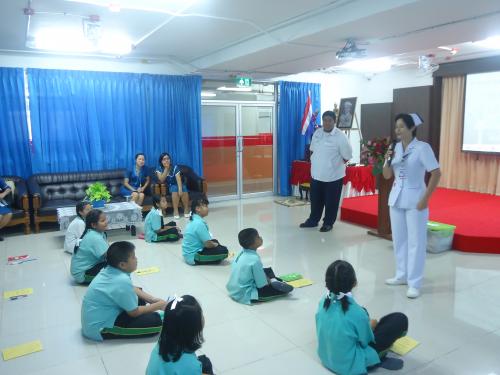 16 ส.ค. 56 งานอนามัยโรงเรียน จัดอบรมอาสาพยาบาลให้กับตัวแทนนักเรียน ชั้น ป.๕ และ ม.๒ โดยวิทยากร จาก รพ.แหลมฉบัง