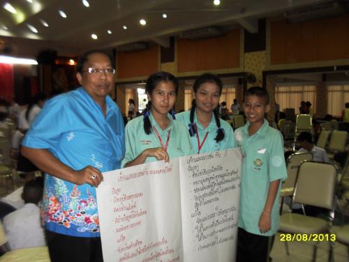 14-16 ส.ค. 56 คุณครูสุรัสวรินทร์ มโนวรณ์ หน.งานปกครอง นำคณะกรรมการสภานักเรียนร่วมอบรมคุณธรรม เรื่อง คุณธรรม นำความรู้สู่ชีวิตในวัยเรียน ณ ศูนย์วิชาการ และนันทนาการเซนคาเบรียล 2000 ต.บ้านใหม่ อ.ปากเกร็ด จ.นนทบุรี