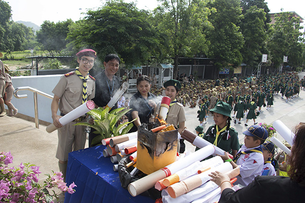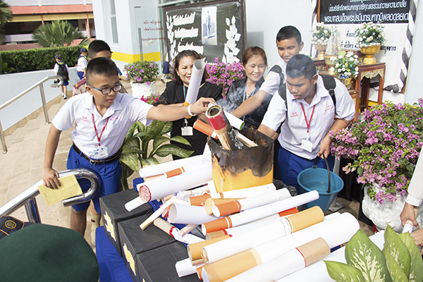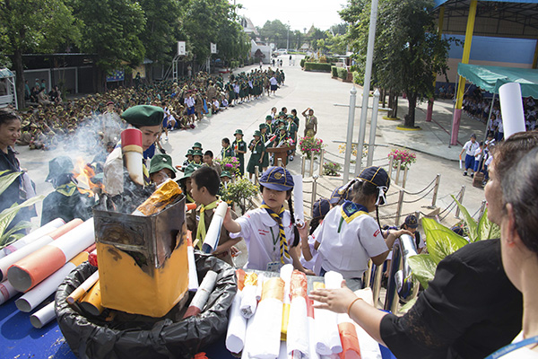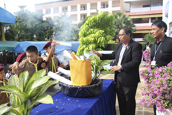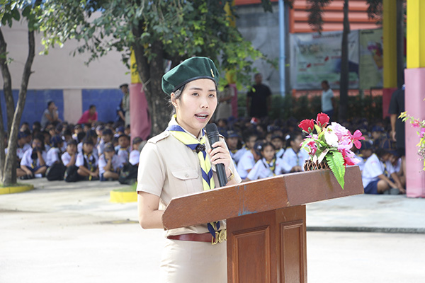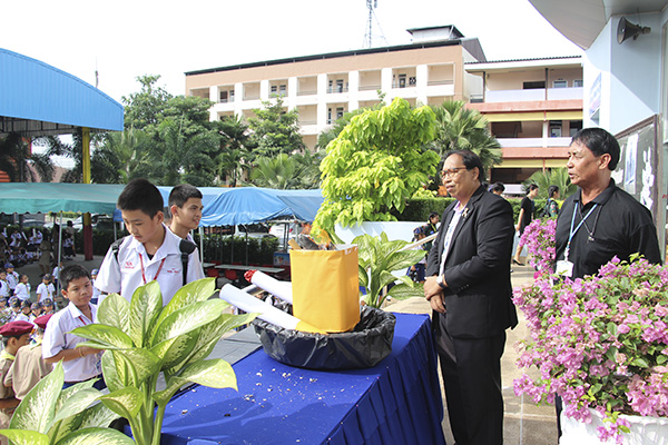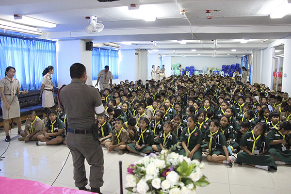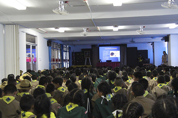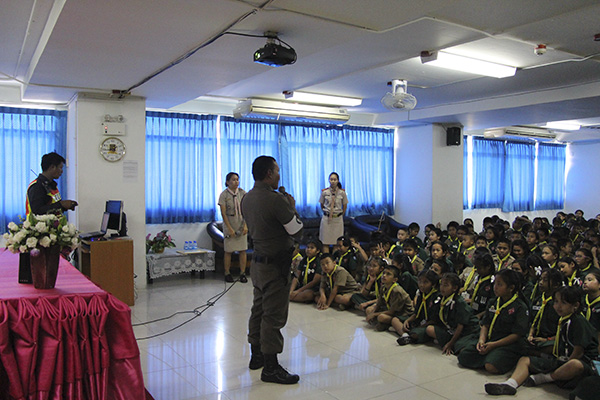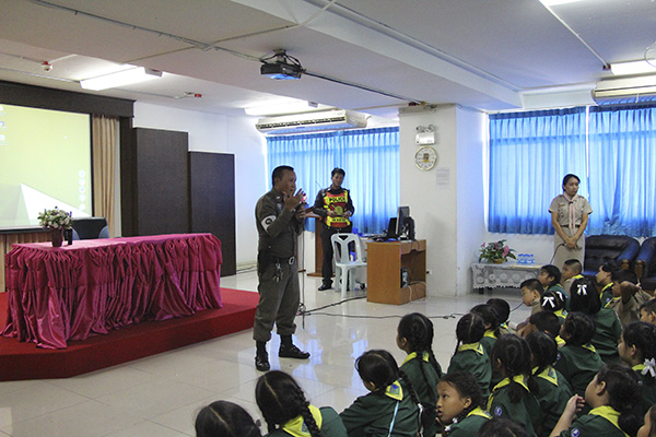 โดยมี นายสนธยา ตุ๋นเจริญ ผู้อำนวยการโรงเรียน เป็นประธานกล่าวเปิดกิจกรรม ผอ.ประสาน เขียวศิริ ผู้อำนวยการศูนย์มูลนิธิอาสาบรรเทาภัย ประจำจังหวัดชลบุรี