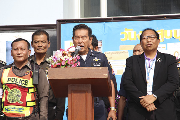 และด.ตร.ศักดิ์ชาย อุดมนอก หัวหน้างานจราจร สภ.แหลมฉบัง ให้เกียรติมาร่วมในพิธีเปิดกิจกรรมและเผาทำลายบุหรี่ ในวันงดสูบุหรี่โลก