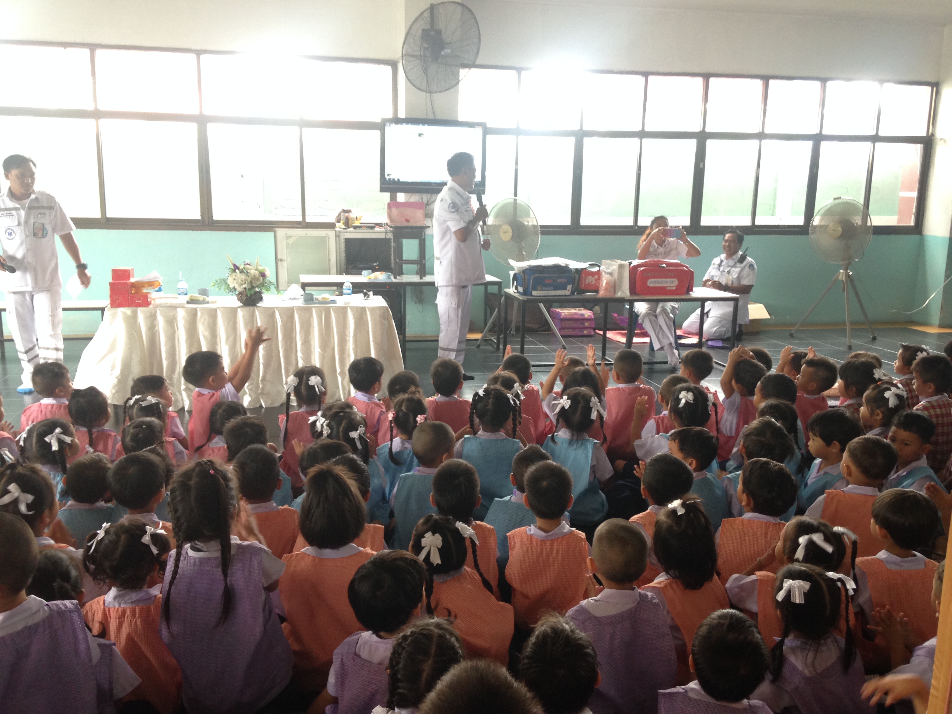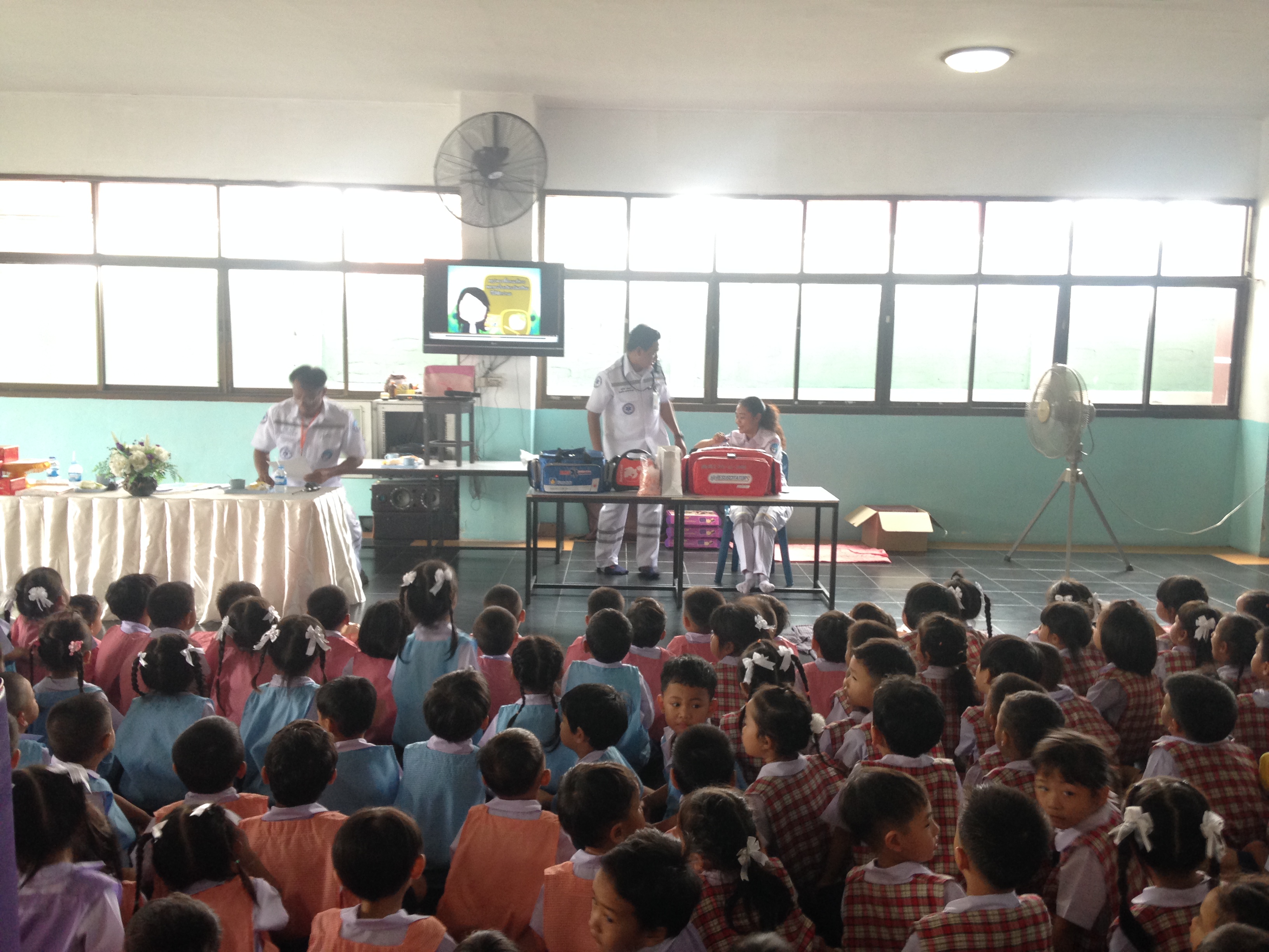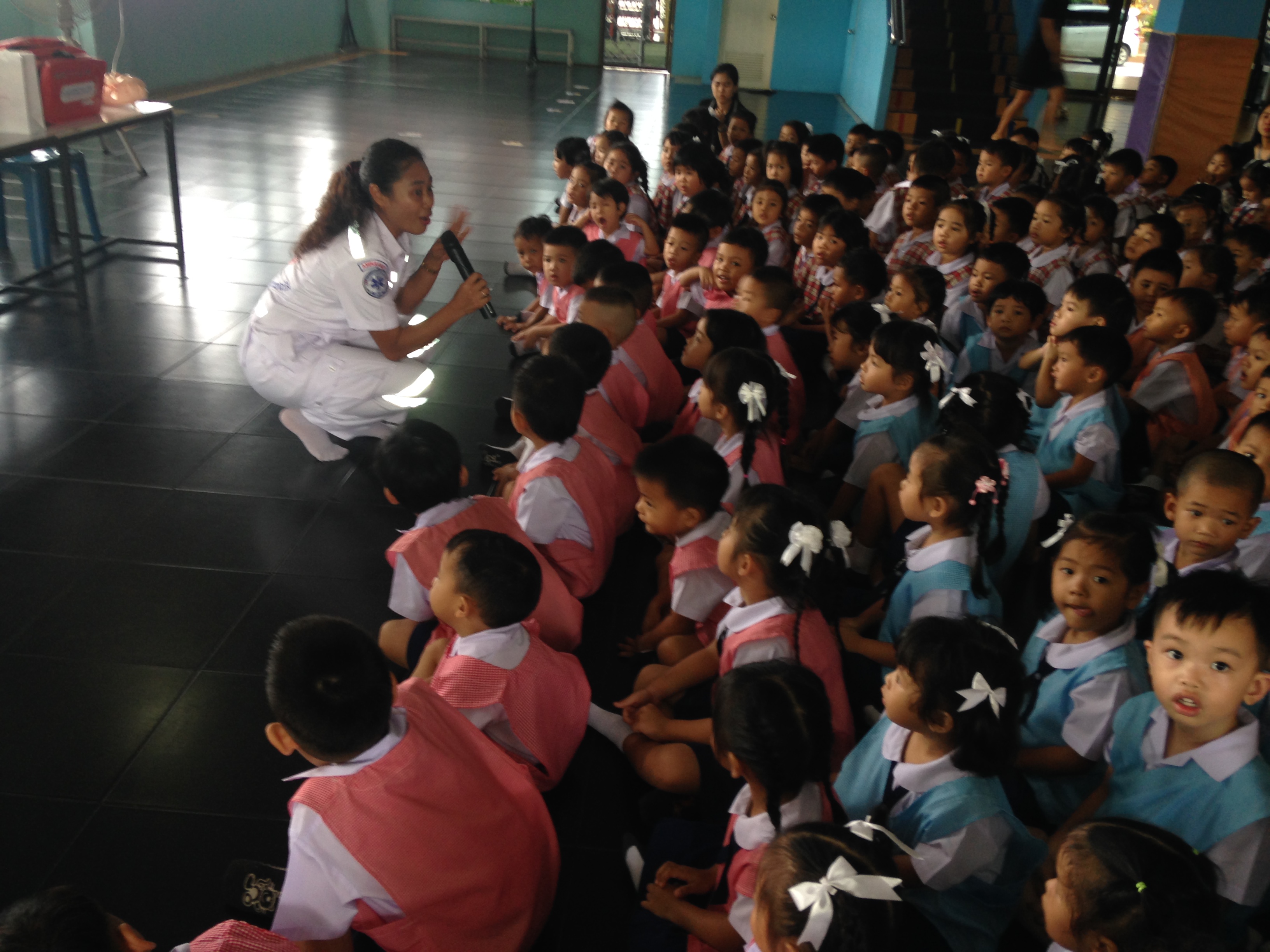ได้จัดอบรมการป้องกันอุบัติเหตุและการปฐมพยาบาลเบื้องต้น ระดับชั้นอนุบาล 1 - อนุบาล 2 ณ ห้องโถงชั้น 1 อาคารเลิศปัญญา