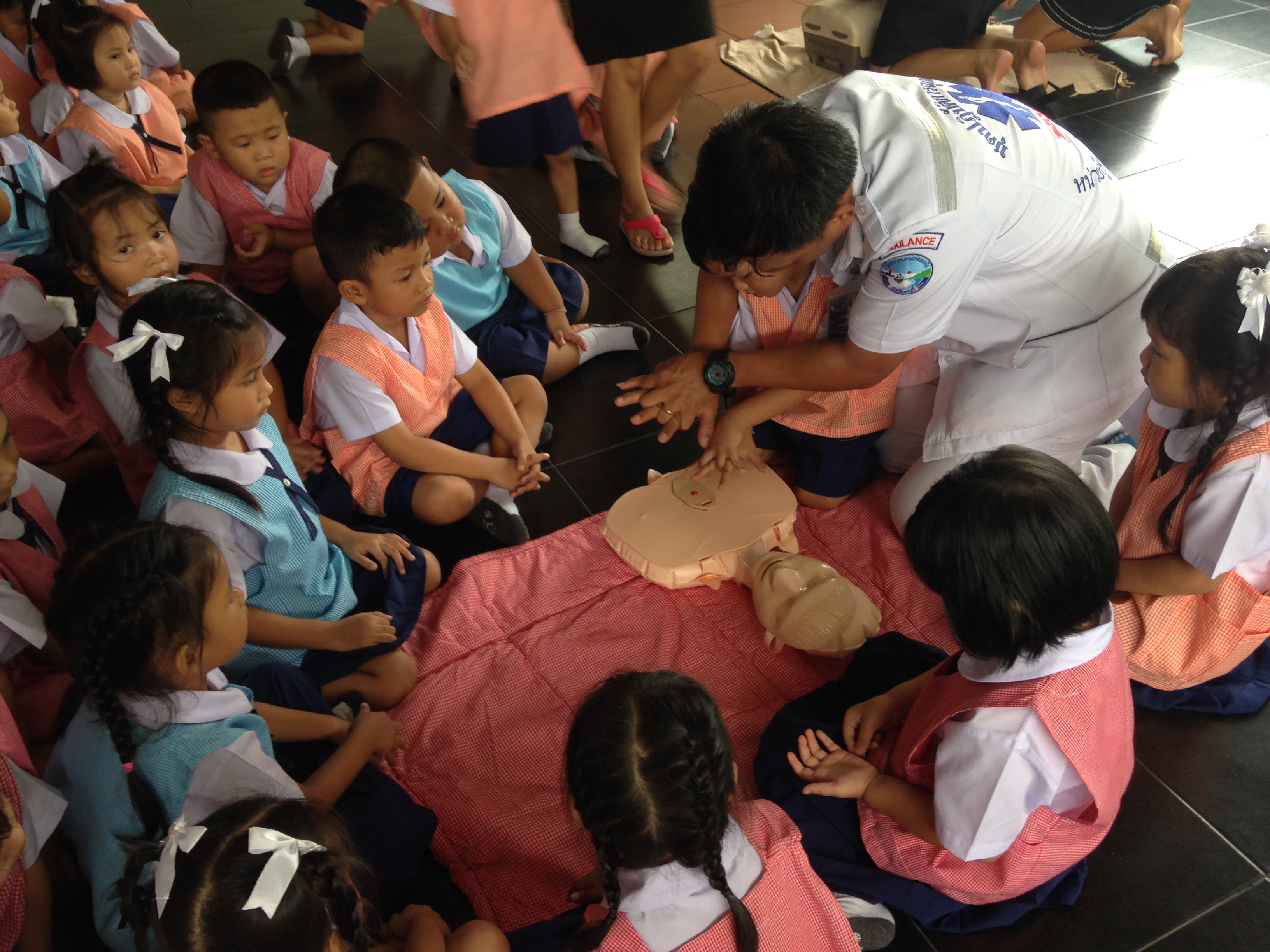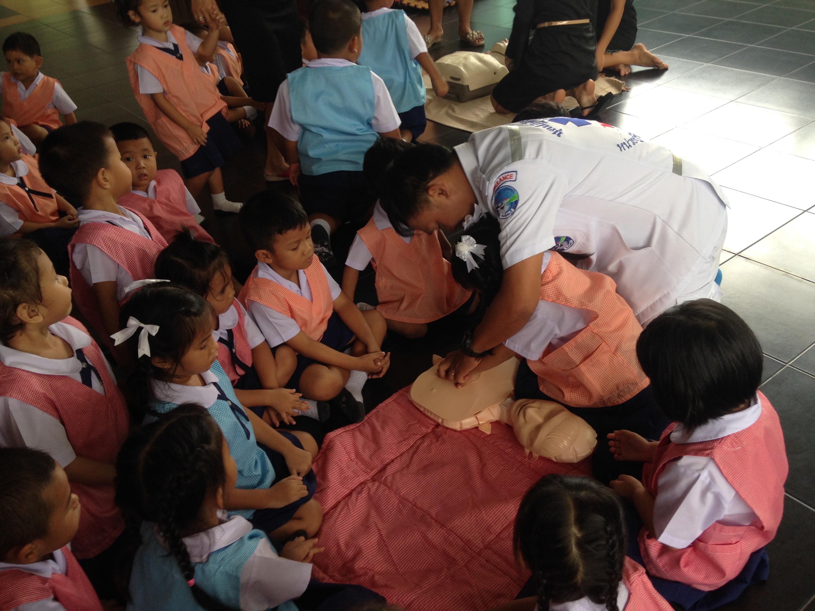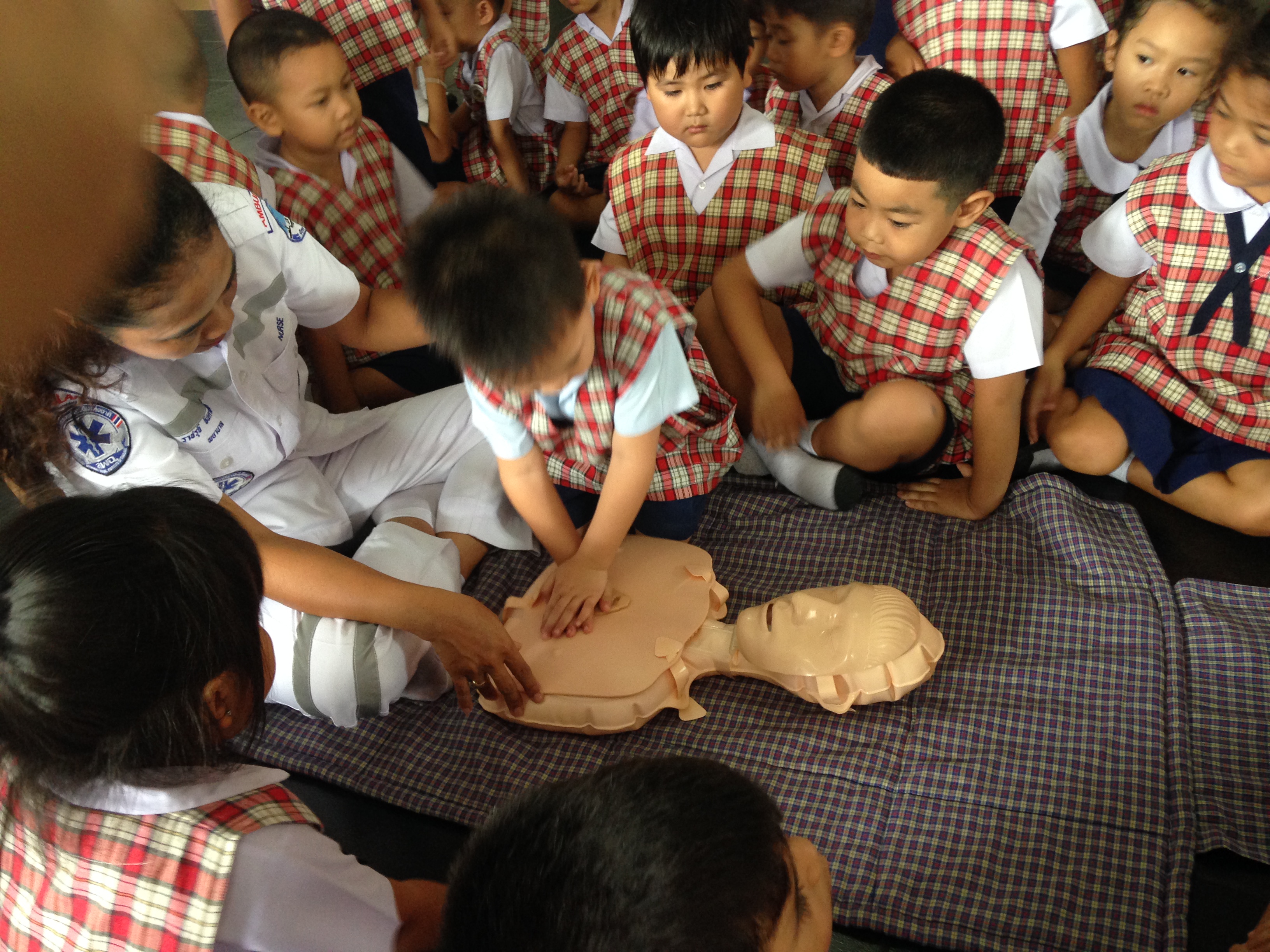 ได้จัดอบรมการป้องกันอุบัติเหตุและการปฐมพยาบาลเบื้องต้น ระดับชั้นอนุบาล 1 - อนุบาล 2 ณ ห้องโถงชั้น 1 อาคารเลิศปัญญา