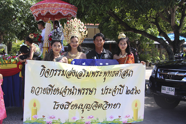 ร่วมกันจัดกิจกรรมส่งเสริมพระพุทธศาสนา ถวายเทียนจำนำพรรษา ปีการศึกษา 2560 ณ วัดศรีธรรมาราม (บ้านทุ่งกราด) โดยมีขบวนแห่และนางรำ จากคณะครูและนักเรียน รวมทั้งเชิญชวนให้ชาวบ้านร่วมทำบุญทำกุศลร่วมกันอีกด้วย