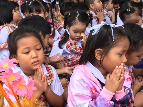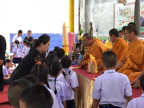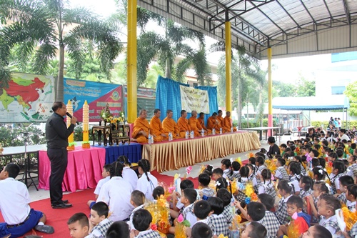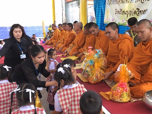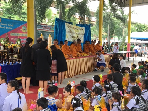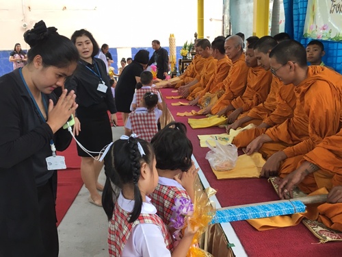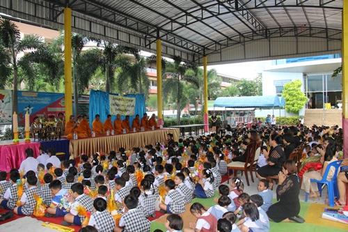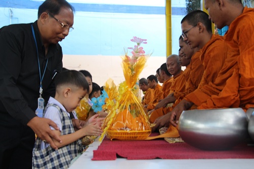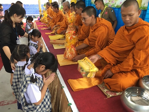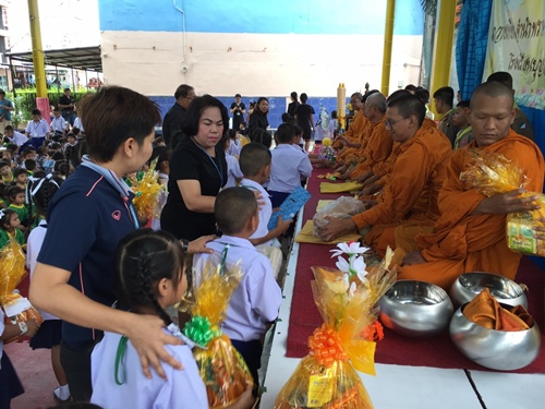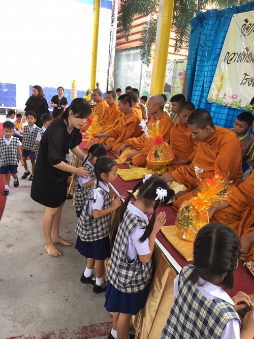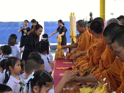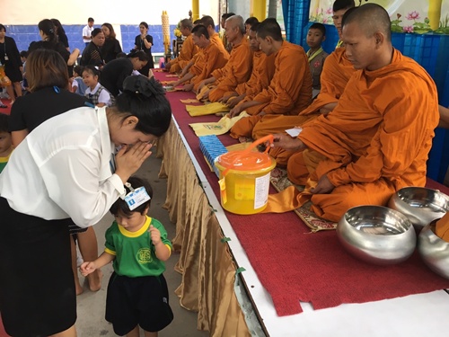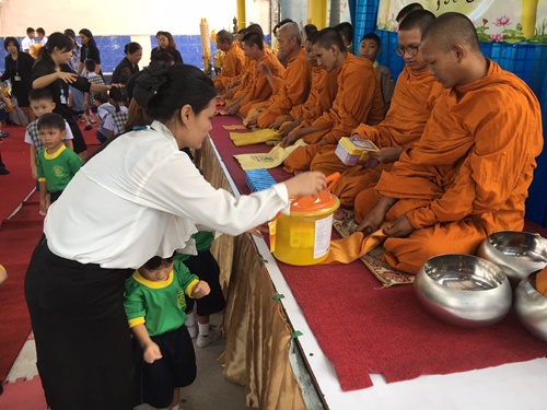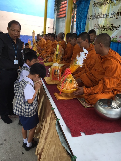 ซึ่งทางโรงเรียนได้นิมนต์พระสงฆ์ จำนวน 9 รูป จากวัดมโนรม และเชิญชวนผู้ปกครองร่วมทำบุญทำกุศลร่วมกันอีกด้วย