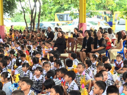 ระดับชั้นเตรียมอนุบาล - ประถมศึกษาปีที่ 1 ร่วมกันจัดกิจกรรมส่งเสริมพระพุทธศาสนา ถวายเทียนจำนำพรรษา ณ โดมหน้าอาคาร 50 ปี