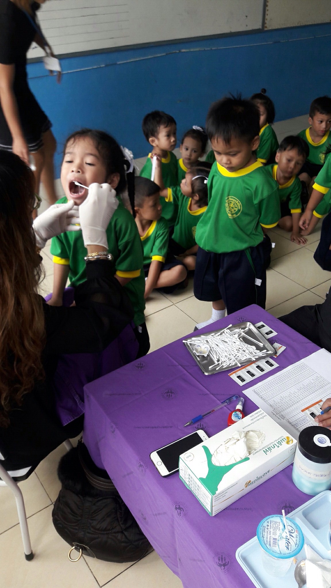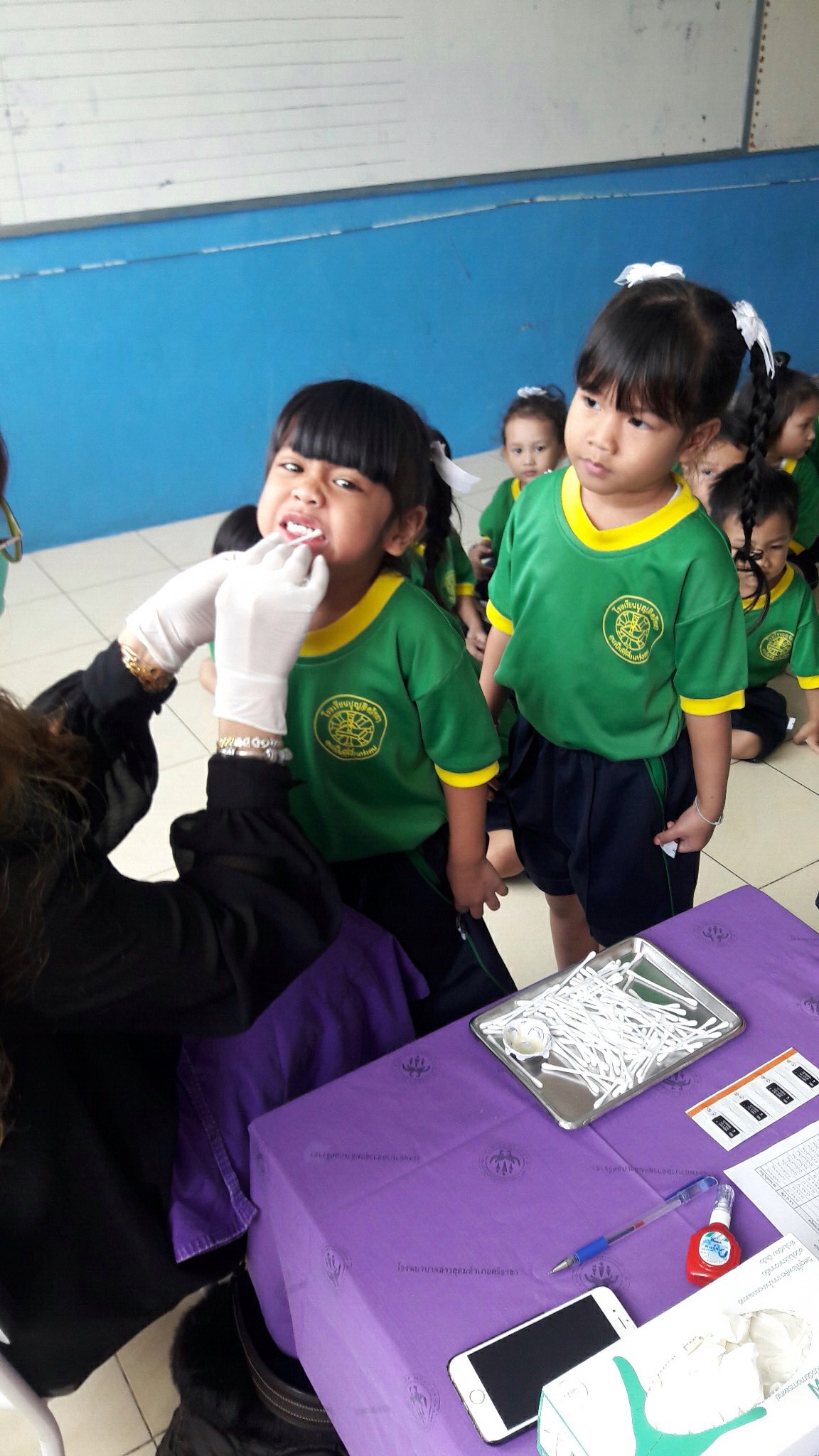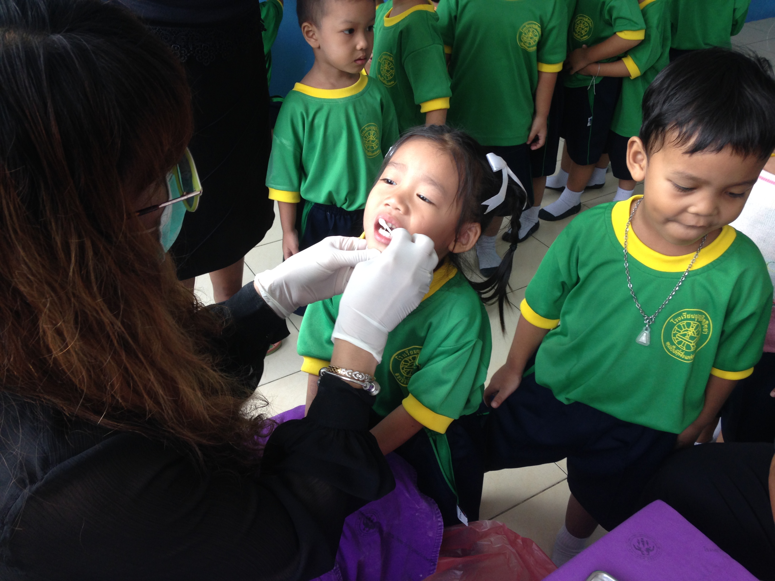 โดยมีครูนุชนารถ กลิ่นลูกอิน ผู้รับชอบกิจกรรม ให้การต้อนรับ นำคุณหมอและคณะเข้าตรวจสุขภาพช่องปาก