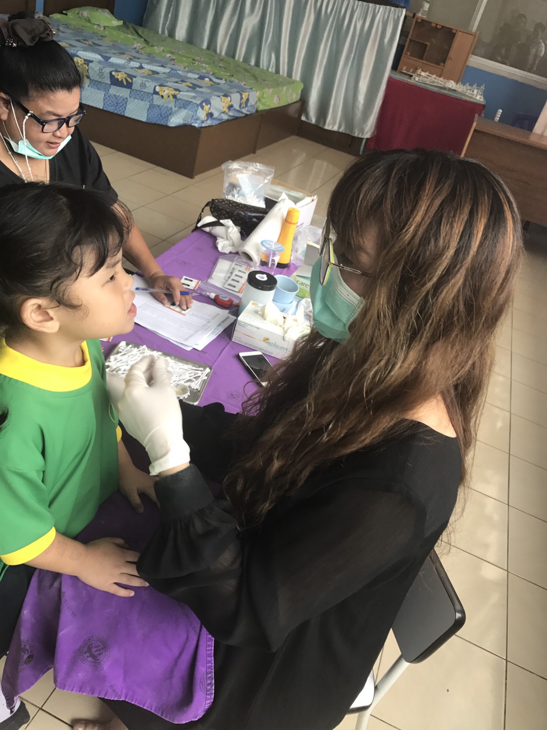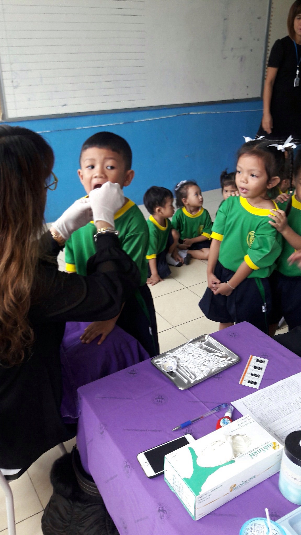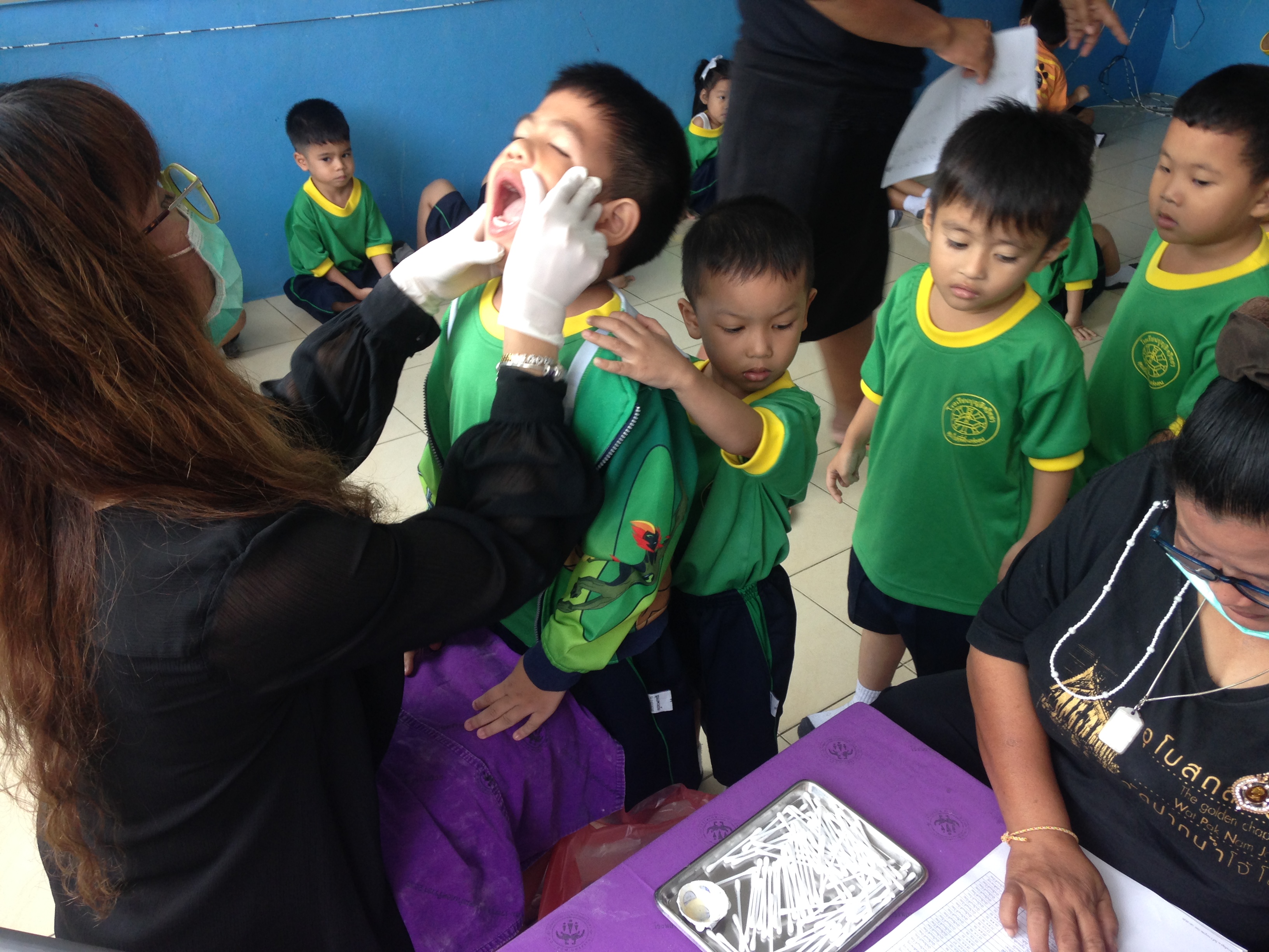 โดยมีครูนุชนารถ กลิ่นลูกอิน ผู้รับชอบกิจกรรม ให้การต้อนรับ นำคุณหมอและคณะเข้าตรวจสุขภาพช่องปาก