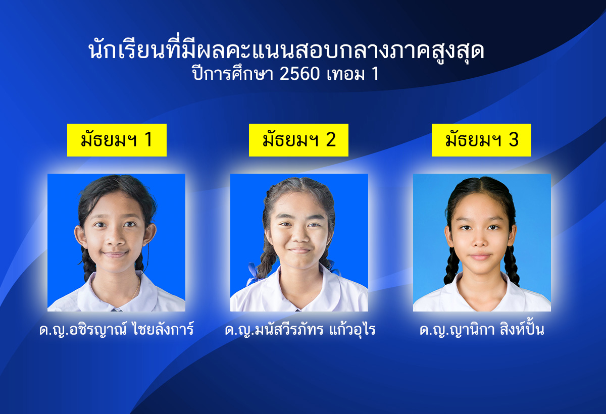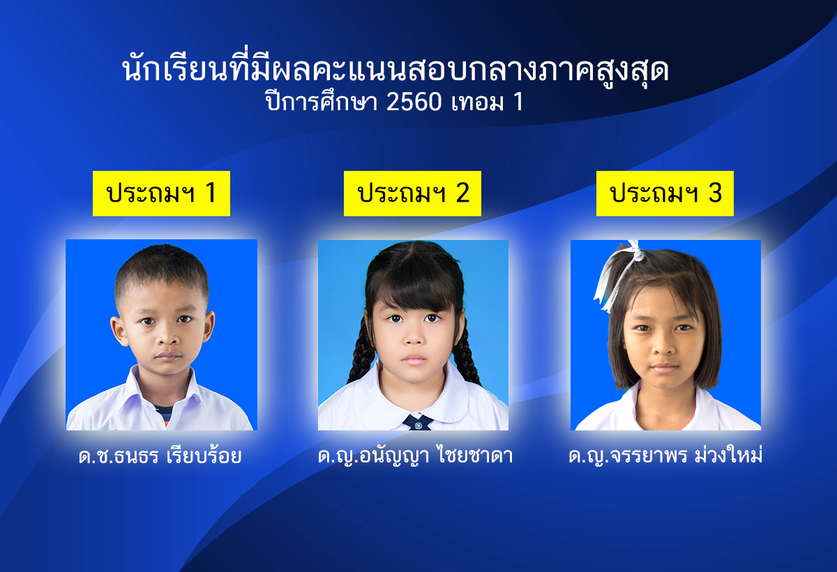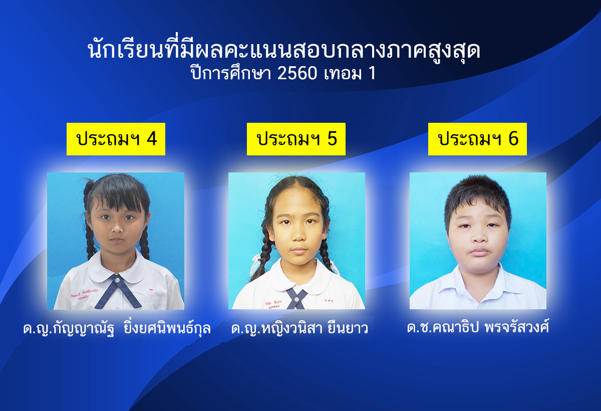 นักเรียนที่ผลคะแนนสอบกลางภาคสูงสุด ทุกระดับชั้น ปีการศึกษา 2560