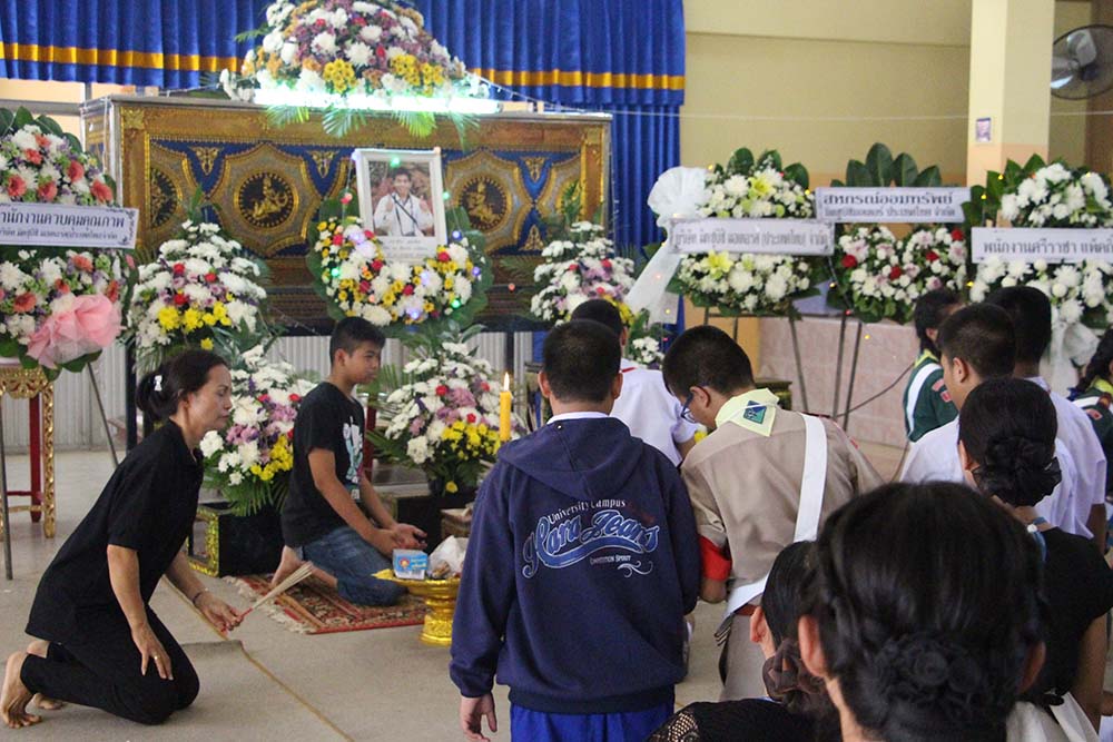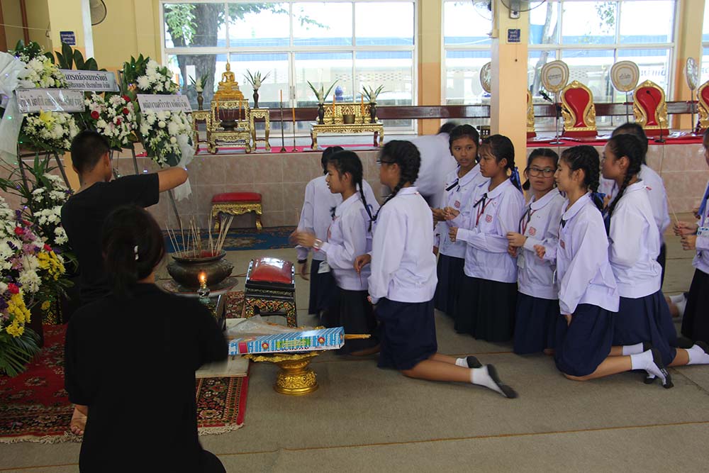 1 สิงหาคม 2560 เวลา 12.00-13.00 น. โรงเรียนบุญจิตวิทยานำโดย นายสนธยา ตุ๋นเจริญ ผู้อำนวยการ ครูลัดดาวัลย์ สืบจากเทียม รองผู้อำนวยการฯ คณะครูที่เป็นตัวแทน ครูประจำชั้น พร้อมนักเรียนชั้นมัธยมศึกษาปีที่ 2/1 และตัวแทนสมาคมผู้ปกครอง ครูและศิษย์เก่าโรงเรียนบุญจิตวิทยา เข้าร่วมร่วมแสดงความอาลัยและเคารพศพผู้ปกครอง (คุณพ่อ) ดช .อิทธิพล สองเมือง นักเรียนชั้นมัธยมศึกษาปีที่ 2/1 ที่วัด ศรีรัตนาราม(วัดบ่อหิน)
