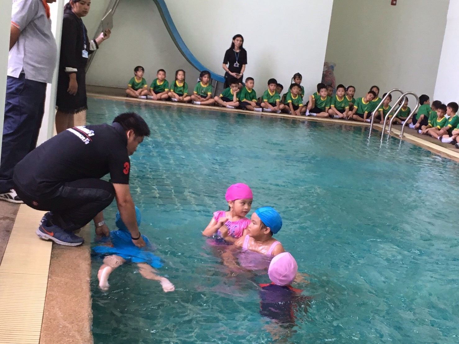 ในวันพุธ ที่ 6 กันยายน 2560 ฝ่ายกิจกรรมนักเรียนและคณะทำงาน แผนกปฐมวัย ได้จัดอบรม เด็กไทย ปลอดภัย ไม่จมน้ำ ระดับชั้นอนุบาล 3