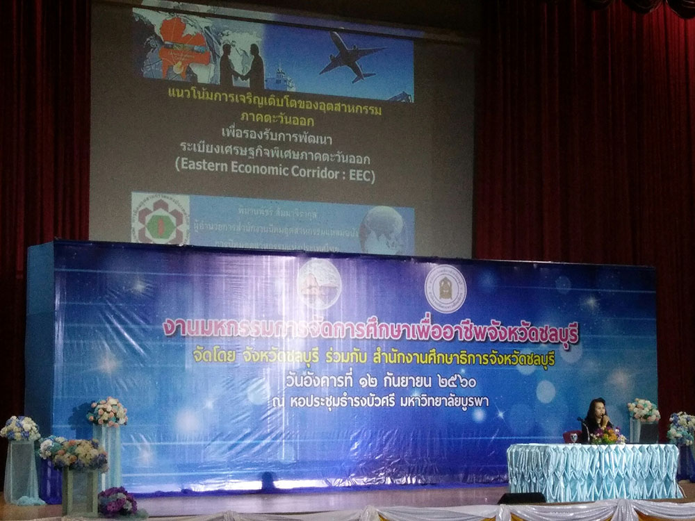 วันอังคารที่ 12 กันยายน 2560 โรงเรียนบุญจิตวิทยา นำโดย ผอ.สนธยา ตุ๋นเจริญ และคณะครูคณะทำงานฝ่ายวิชาการ ร่วมศึกษาดูงาน งานมหกรรมการจัดการศึกษาเพื่ออาชีพจังหวัดชลบุรี จัดโดย จังหวัดชลบุรี ร่วมกับ สำนักงานศึกษาธิการจังหวัดชลบุรี ณ หอประชุมธำรงบัวศรี มหาวิทยาลัยบูรพา