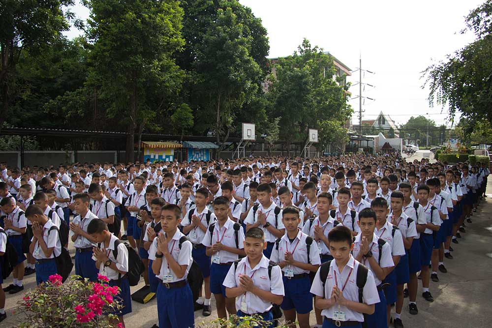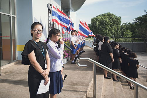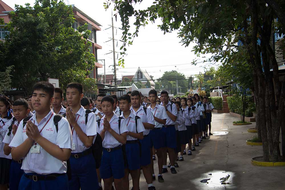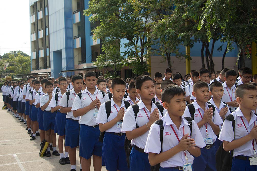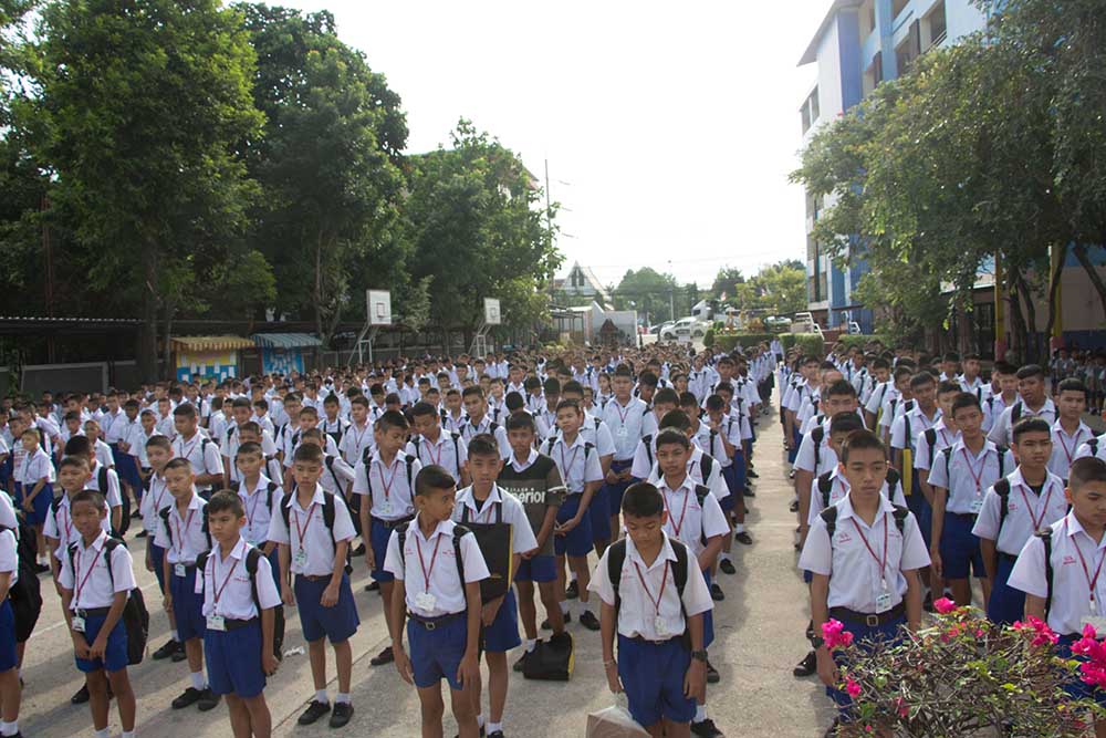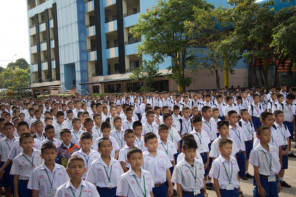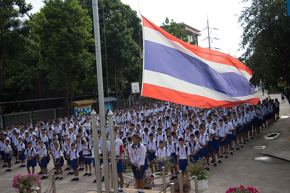 โดยมี ผอ.สนธยา ตุ๋นเจริญ ผู้อำนวยการโรงเรียน นำคณะครู นักเรียนและผู้ปกครอง ร่วมพิธีเชิญธงชาติไทยและร้องเพลงชาติไทย