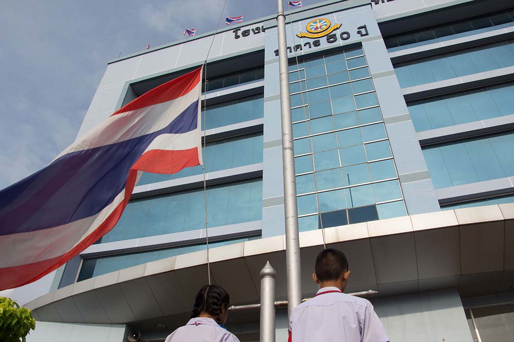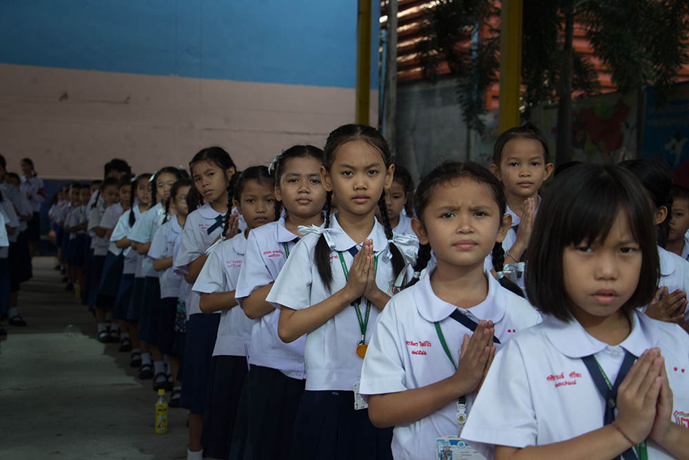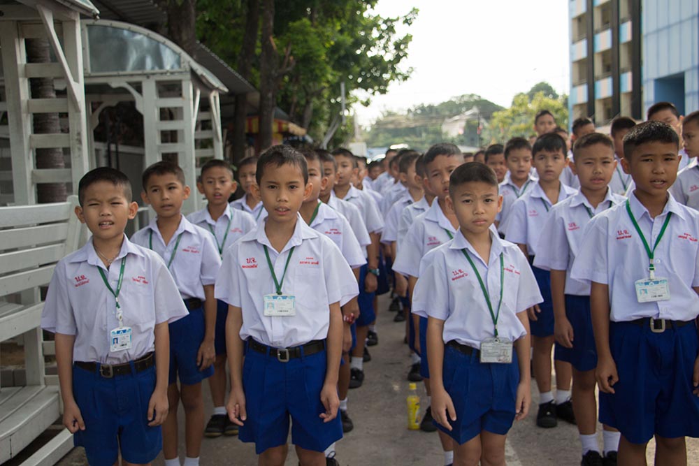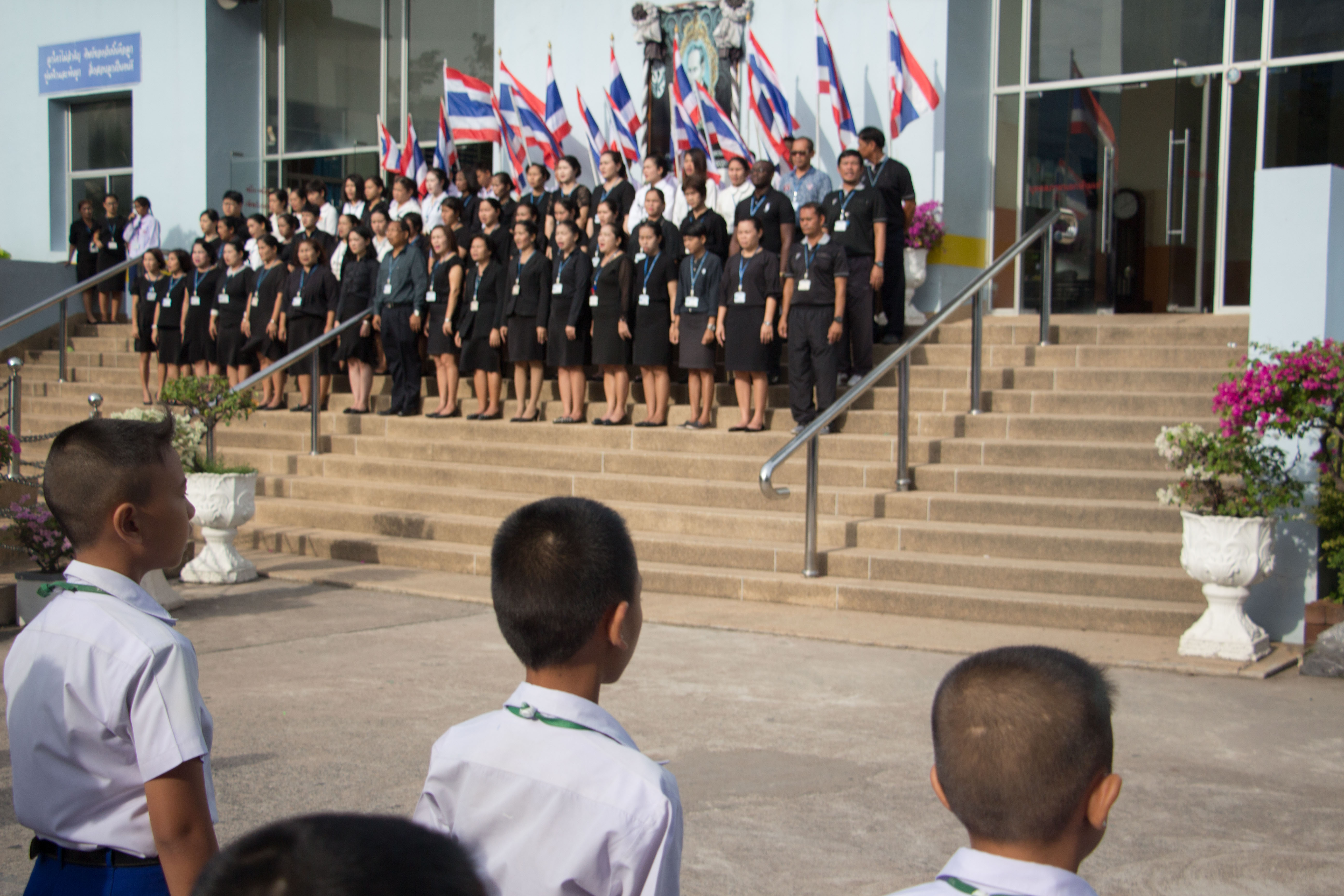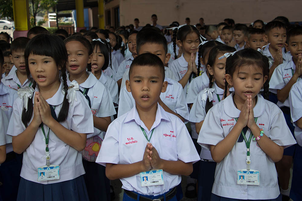 โดยมี ผอ.สนธยา ตุ๋นเจริญ ผู้อำนวยการโรงเรียน นำคณะครู นักเรียนและผู้ปกครอง ร่วมพิธีเชิญธงชาติไทยและร้องเพลงชาติไทย