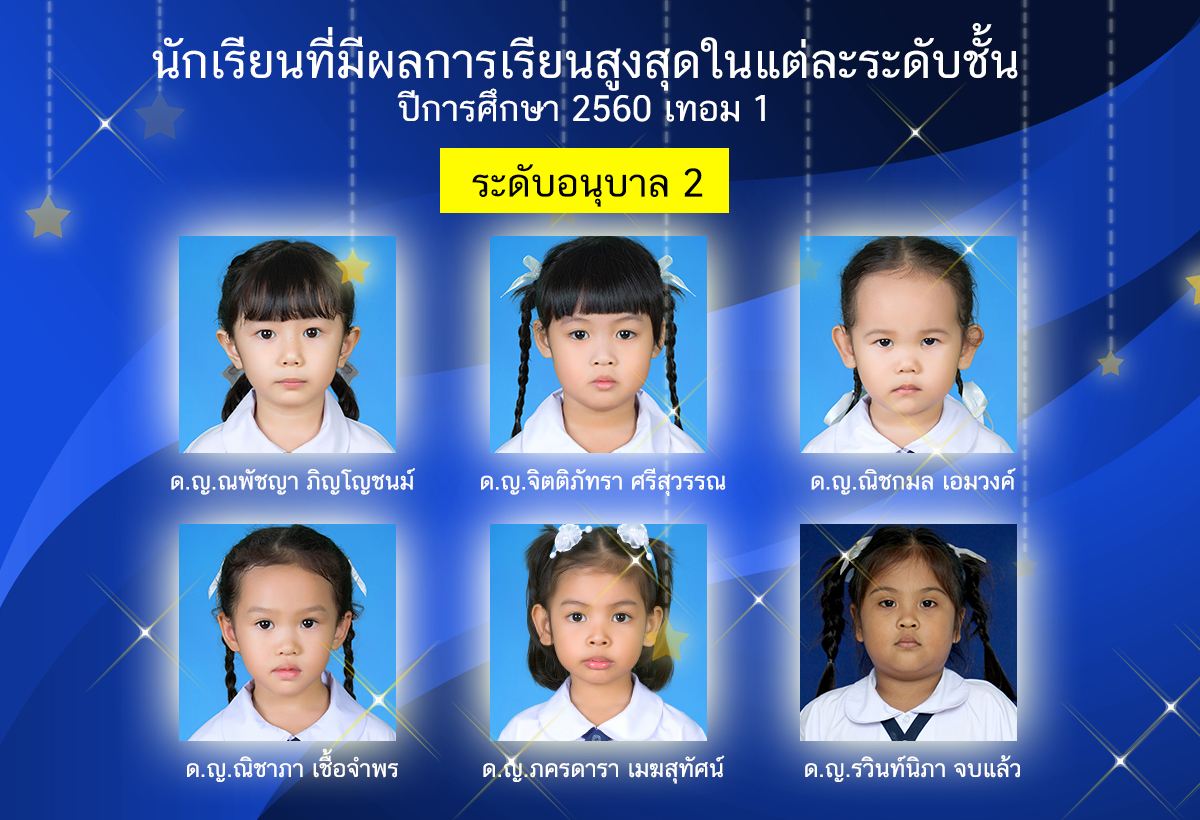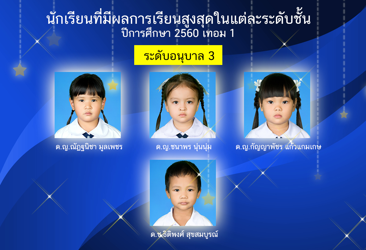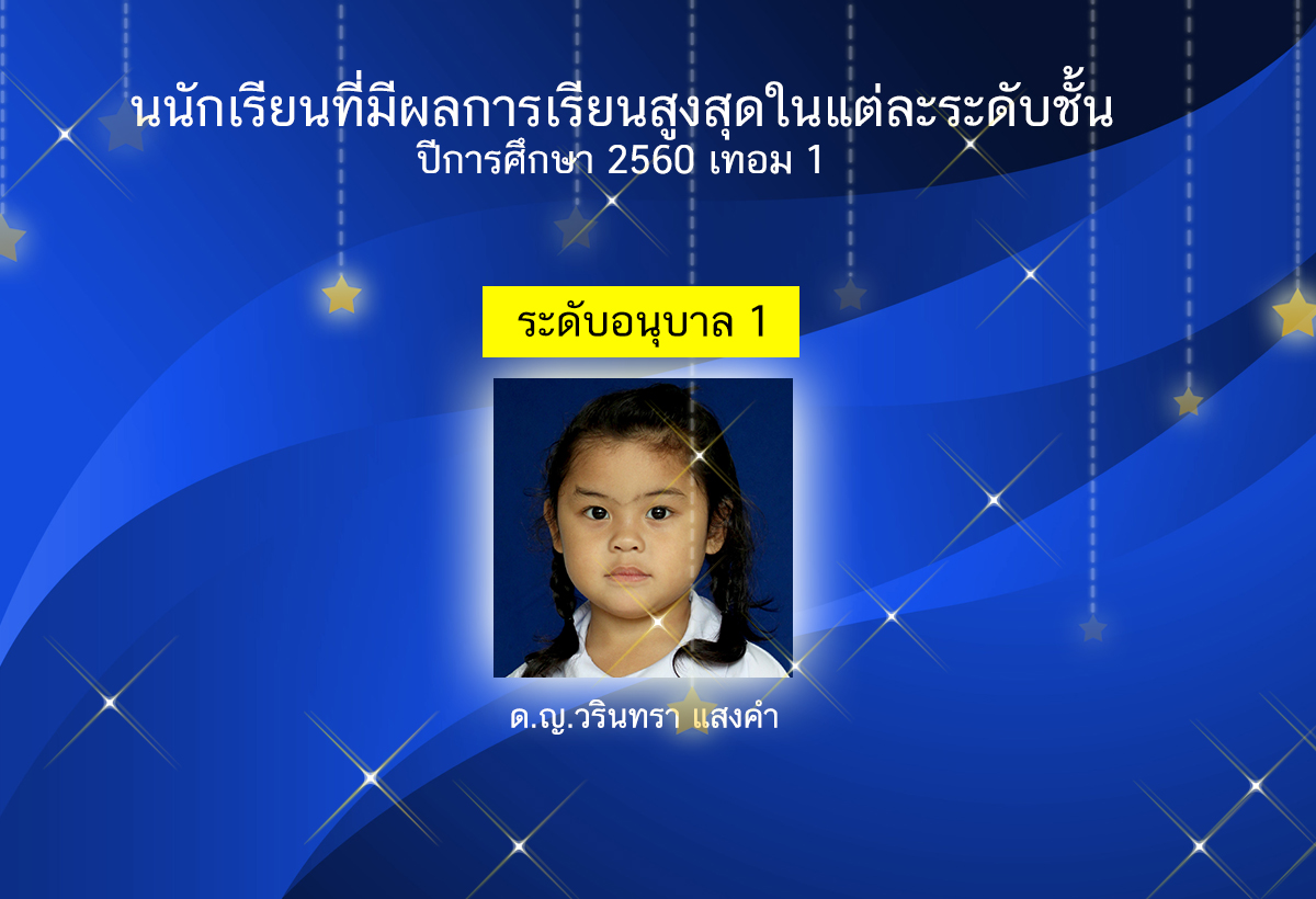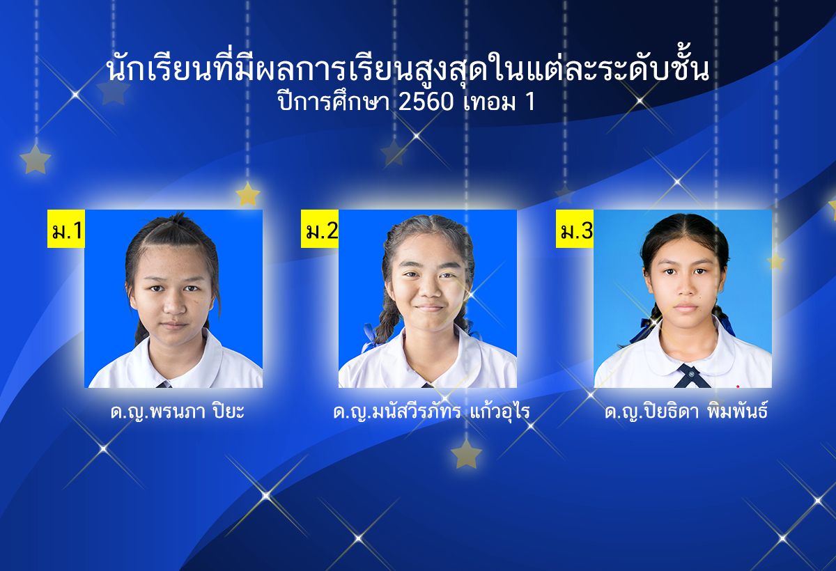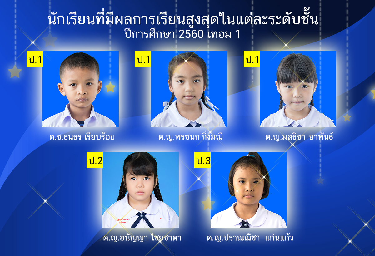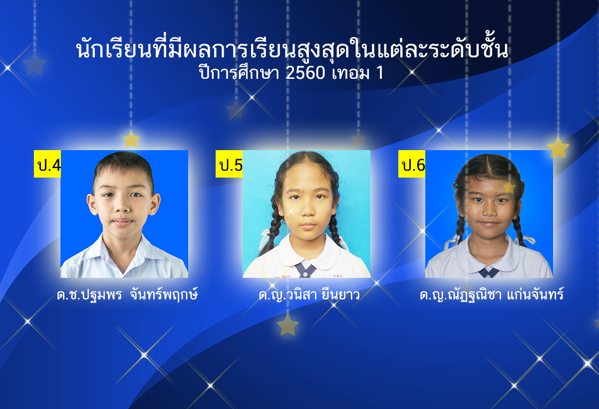 นักเรียนที่มีผลการเรียนสูงสุดในแต่ละระดับชั้น ปีการศึกษา 2560 เทอม 1