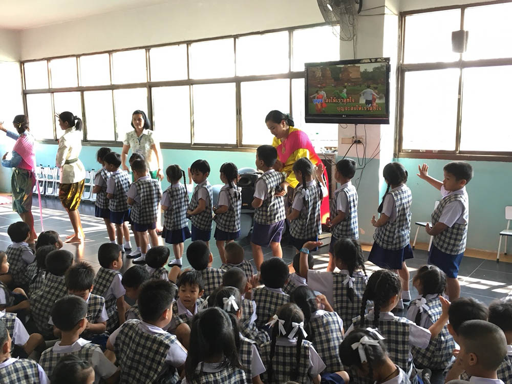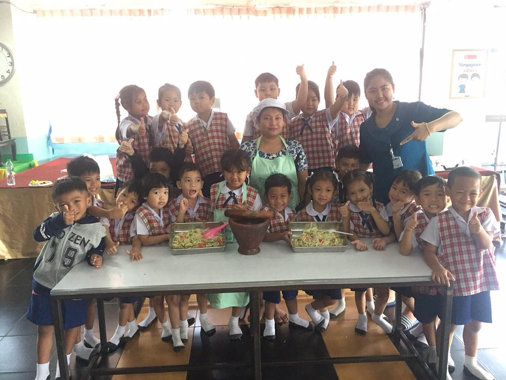 ในวันพุธ ที่ 14 15 และ 21 กุมภาพันธ์ 2561 เวลา 09.00 น. ณ ห้องโถงชั้น 1 แผนกปฐมวัย กิจกรรม หนึ่งครู หนึ่งวิทยากร หนึ่งแหล่งเรียนรู้ ระดับปฐมวัย ระดับชั้นอนุบาล 3 ได้เชิญวิทยากร คุณครูนวลปราง หอมวิเศษ มาให้ความรู้เกี่ยวกับการรำวงไทย ,วิทยากร คุณสุนารี ไชยวงศ์ มาให้ความรู้เกี่ยวกับการทำส้มตำไทย ,