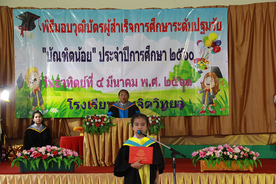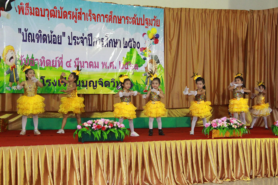 วันอาทิตย์ที่ 4 มีนาคม 2561 โรงเรียนบุญจิตวิทยา จัดกิจกรรม " พิธีมอบวุฒิบัตรบัณฑิตน้อย " ให้แก่นักเรียนในระดับปฐมวัย