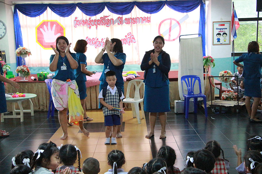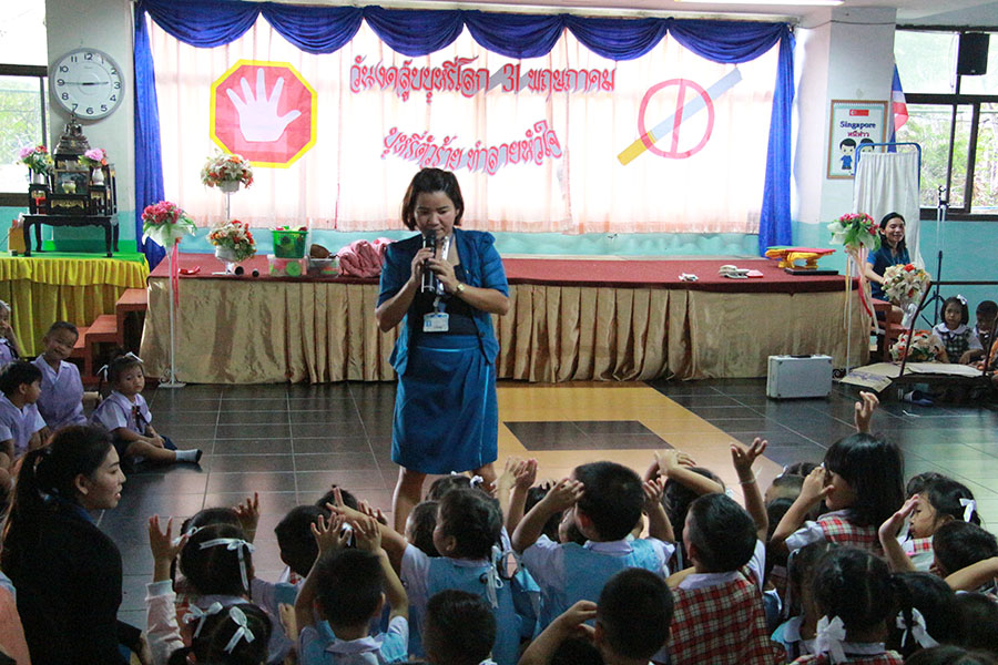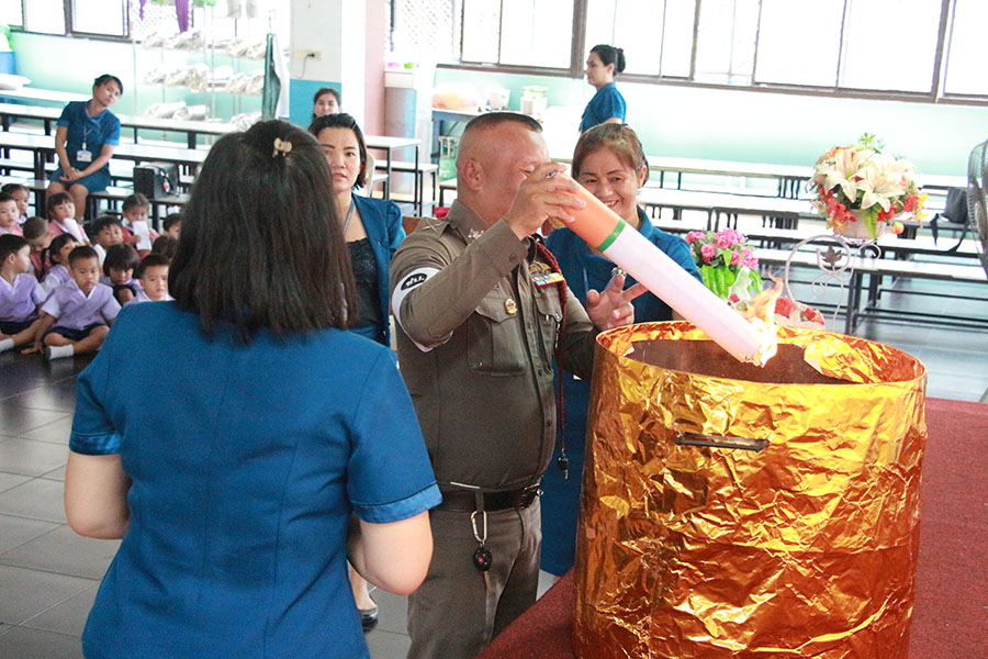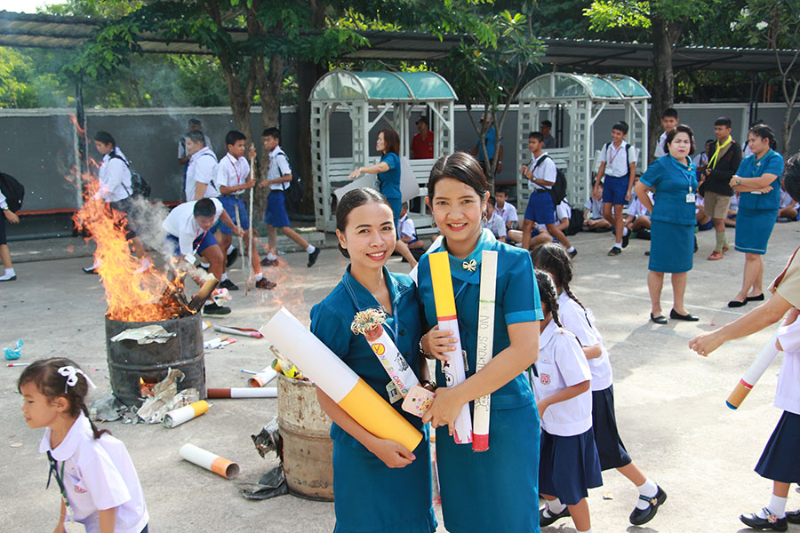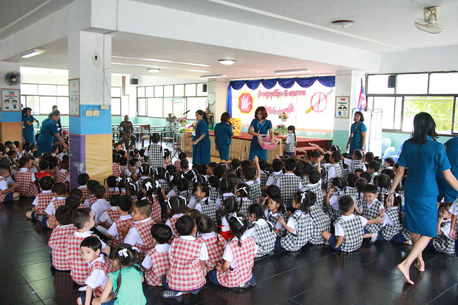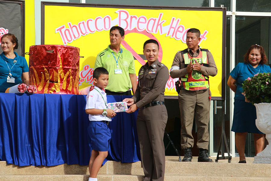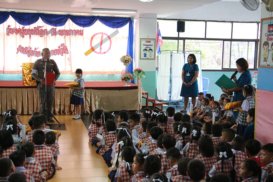 โดยมีเจ้าหน้าที่ตำรวจ สภ.แหลมฉบัง ให้เกียรติมาร่วมในพิธีเปิดกิจกรรมและเผาทำลายบุหรี่ ในวันงดสูบุหรี่โลก และในช่วงบ่ายเป็นกิจกรรมของระดับปฐมวัยมีการแสดงละครเกี่ยวกับโทษและพิษภัยของการสูบบุหรี่ มีการตอบปัญหาความรู้และแจกของรางวัล