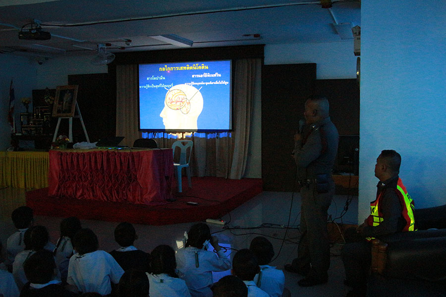 และในช่วงบ่าย ระดับปฐมและมัธยมฯต้น โดย ด.ตร.ศักดิ์ชาย อุดมนอก หัวหน้างานจราจร สภ.แหลมฉบัง ให้เกียรติมาเป็นวิทยากรให้ความรู้เรื่องโทษและพิษภัยของบุหรี่ ที่ห้องประชุมชั้น 2 อาคาร 50 ปี โรงเรียนบุญจิตวิทยา