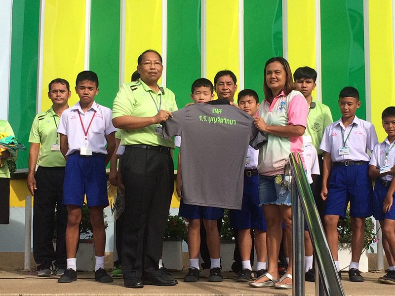 พร้อมเสื้อ Staff 5 ตัว เพื่อให้ทางโรงเรียนบุญจิตวิทยา ใช้ในการแข่งขันกีฬาฟุตบอลในรายการต่างๆ