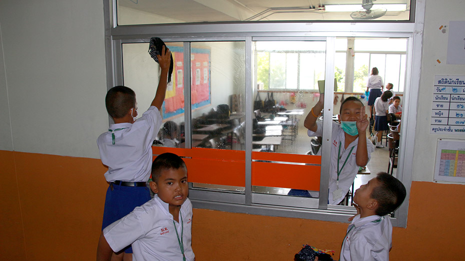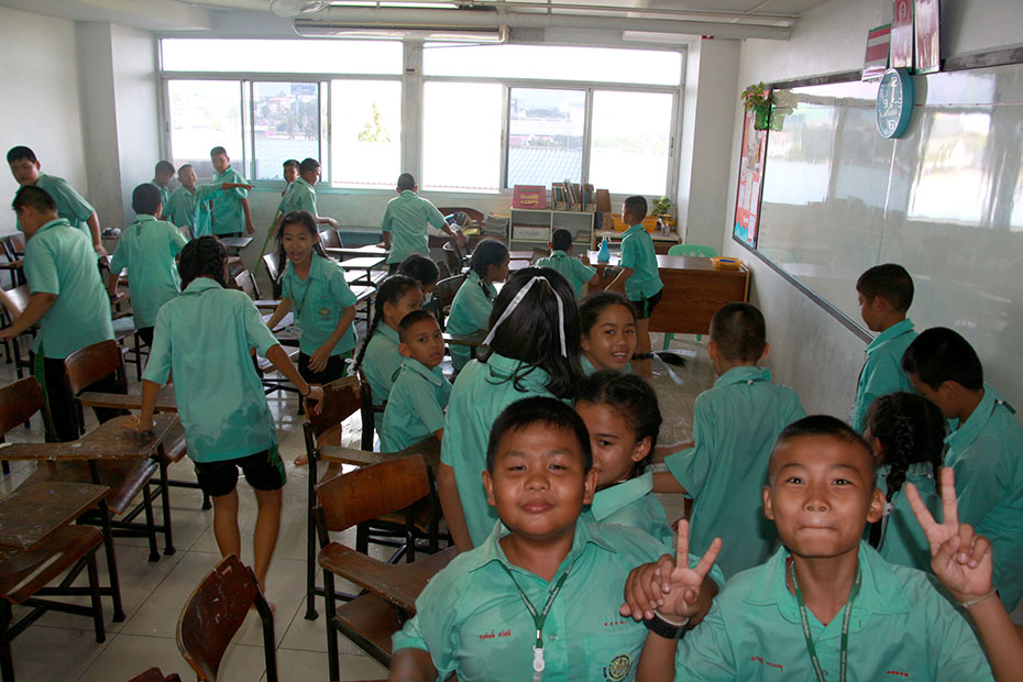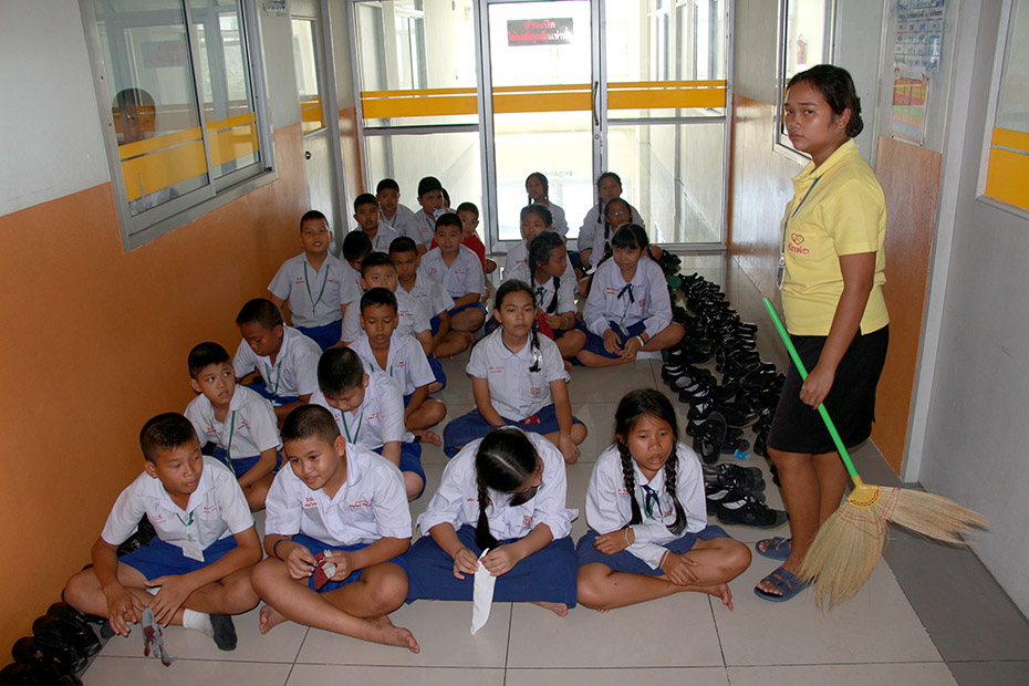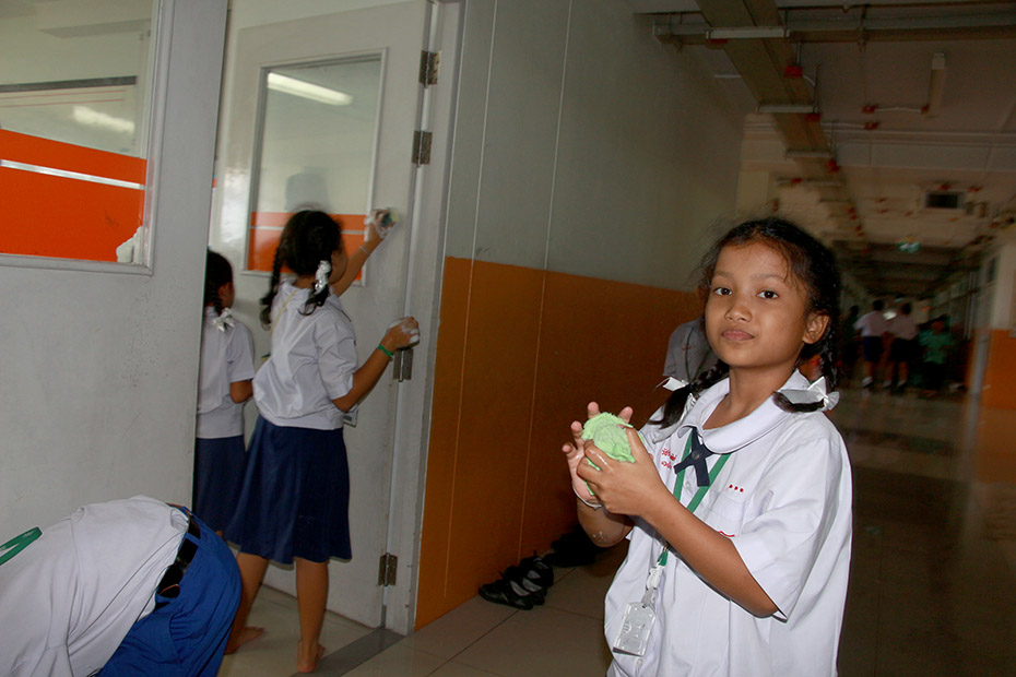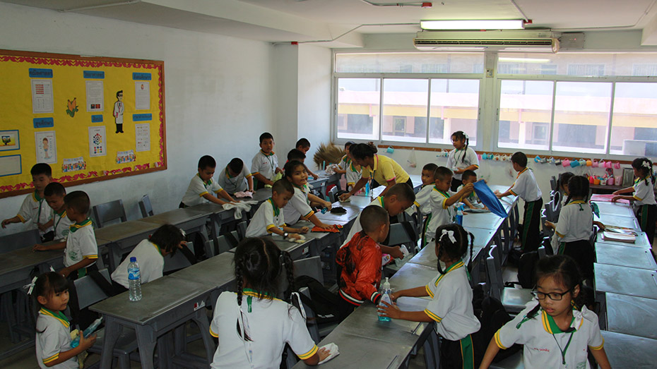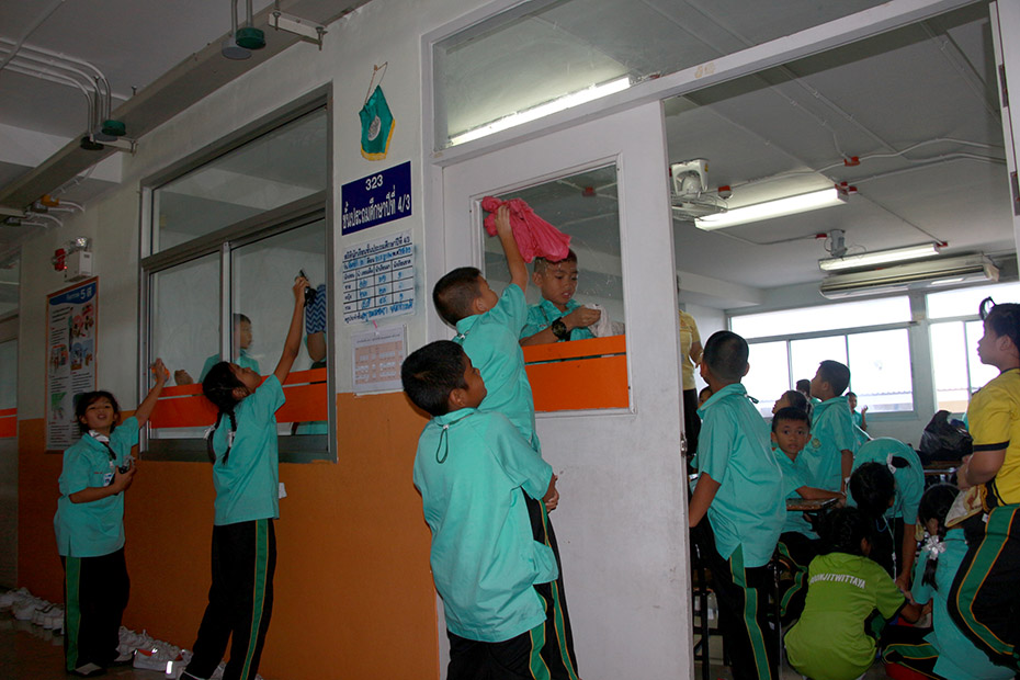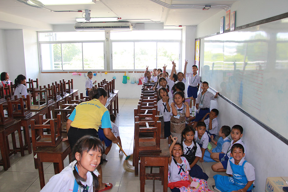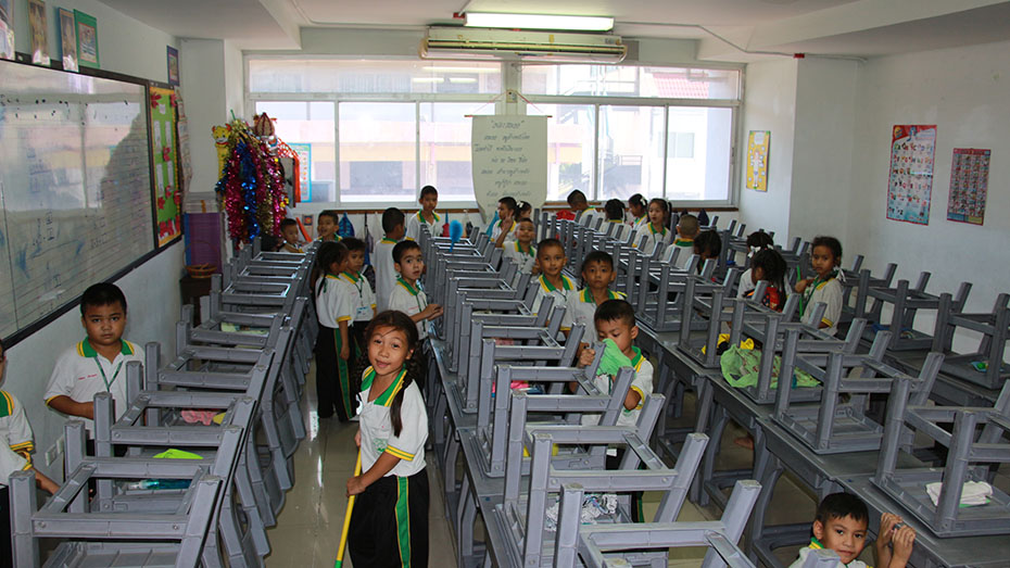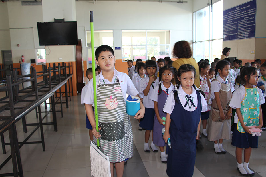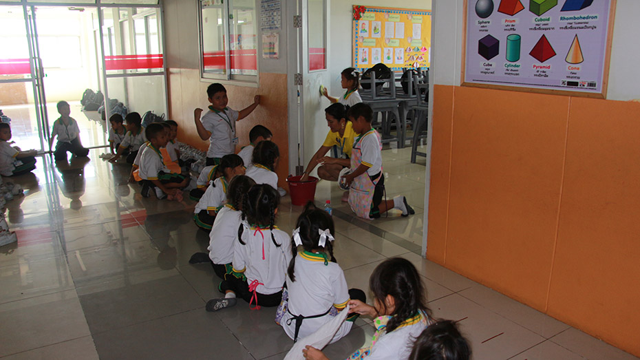 ในการดูแลรักษาความสะอาดโรงเรียน ห้องเรียนของตนเอง เพื่อฝึกนิสัยให้รู้จักการช่วยเหลือ