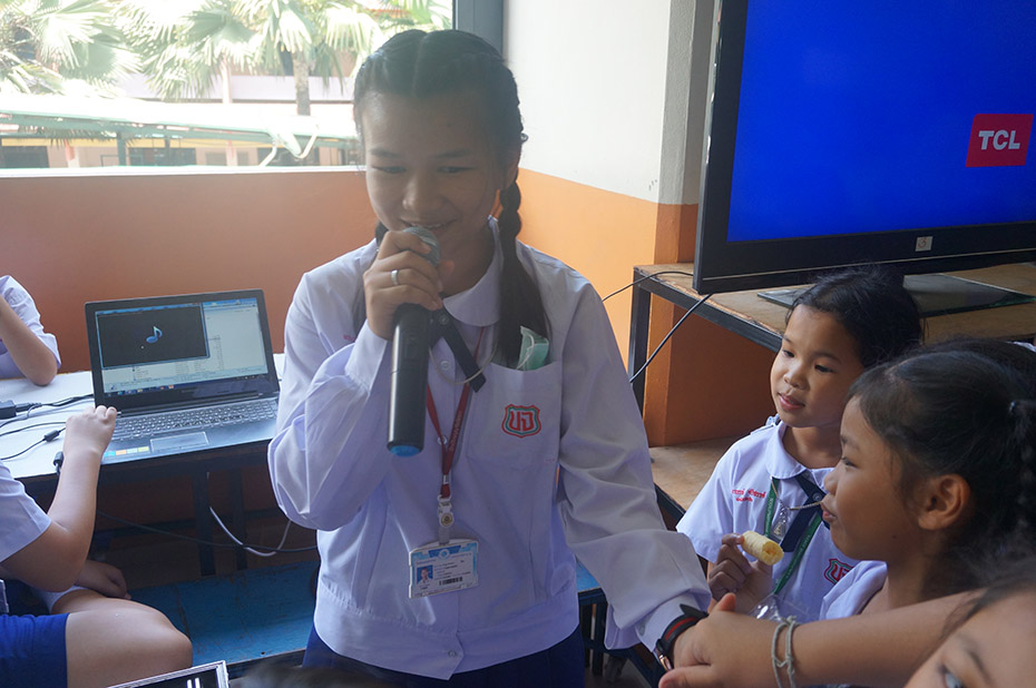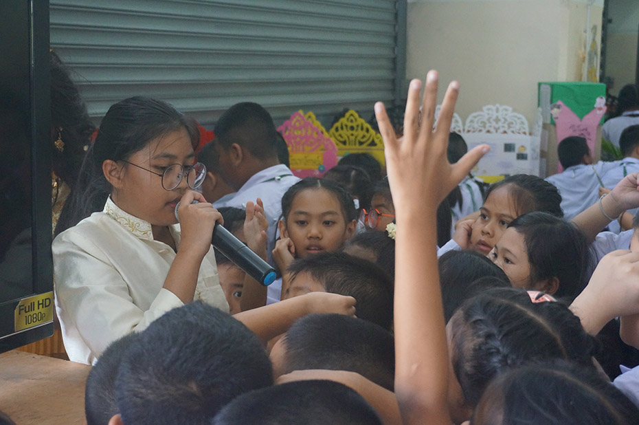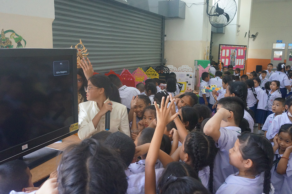 นอกจากนี้ยังมีการร่วมสนุกให้นักเรียนได้มีส่วนร่วมโดยตอบคำถามเกี่ยวกับภาษาไทยด้วย