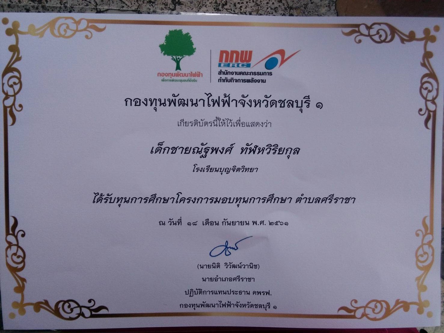 เข้ารับทุนการศึกษาของกองทุนพัฒนาไฟฟ้าจังหวัดชลบุรี 1