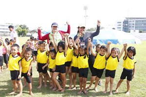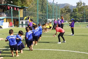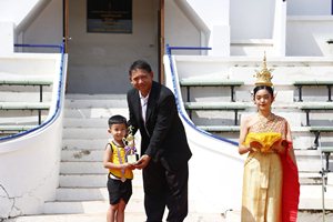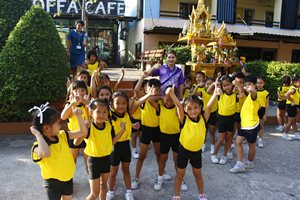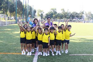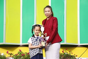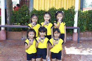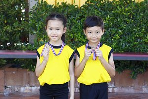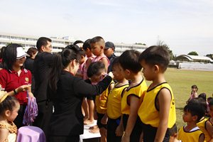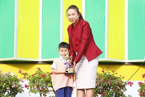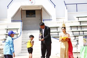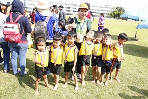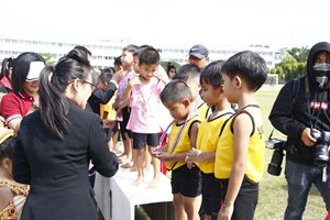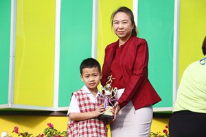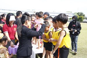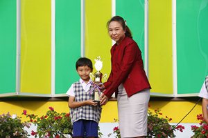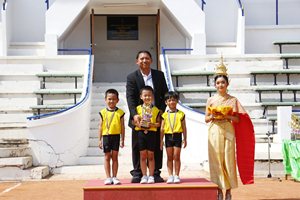 ตัวแทนนักกีฬาอนุบาลได้มอบถ้วยรางวัลคะแนนรวมประเภทกีฬาให้กับทางโรงเรียนบุญจิตวิทยา