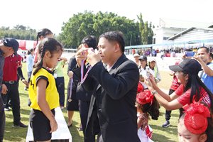 โดยมีนางชวาลา กันทอง ผู้อำนวยการโรงเรียนเป็นผู้รับ ซึ่งทางคณะครูและนักเรียนร่วมกันแสดงความยินดีกับนักกีฬาอนุบาล