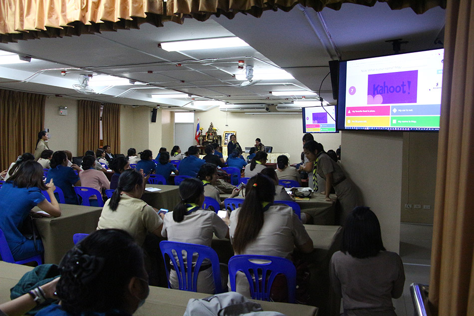 มีการฝึกทักษะการใช้ภาษาอังกฤษ โดยใช้เทคโนโลยี smartphoneและ Internet เข้ามาช่วยเป็นสื่อในกิจกรรม