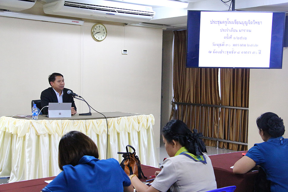 วันที่ 30 มกราคม 2562 โรงเรียนบุญจิตวิทยาจัดการประชุมประจำเดือนขึ้น โดยมี ดร.จักรกฤช กันทอง ผู้รับใบอนุญาตฯ เป็นประธานในการประชุม