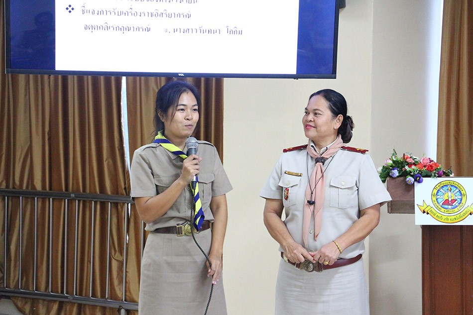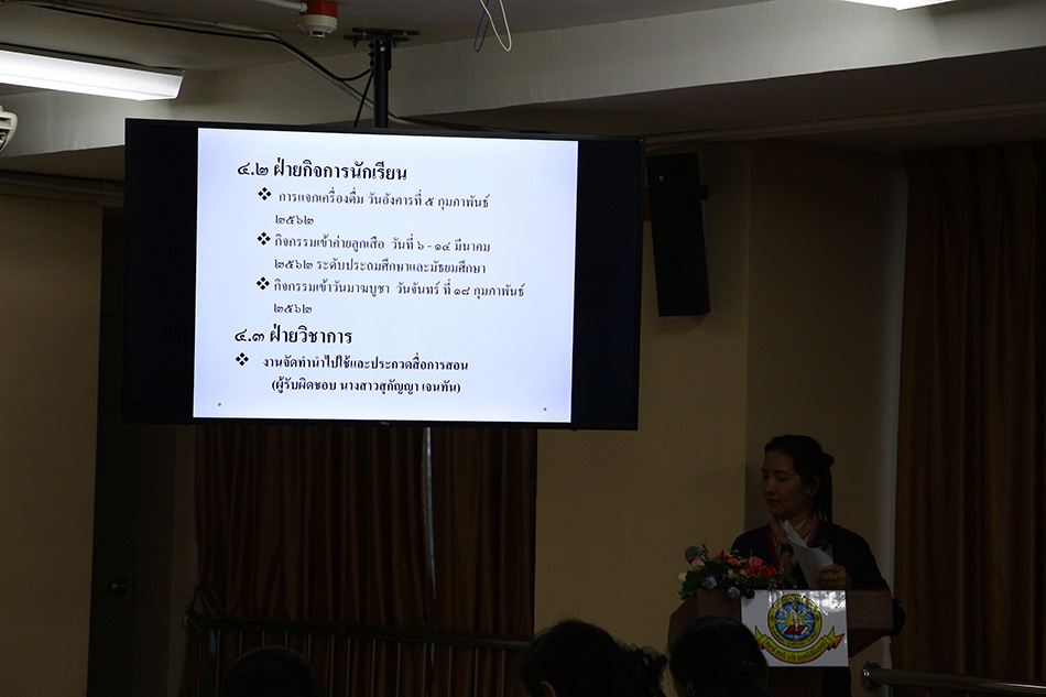 พร้อมด้วยคณะกรรมการบริหาร ในการประชุมคณะครูและบุคลากร ได้มีการชี้แจง ข่าวสารประชาสัมพันธ์ การจัดกิจกรรม