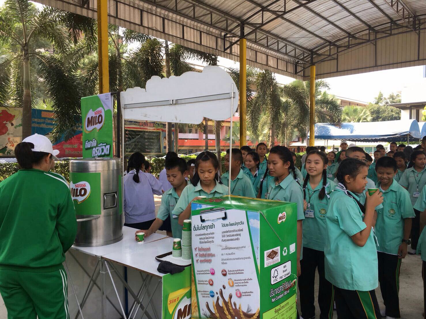 วันที่ 5 กุมภาพันธ์ 2562 ผลิตภัณฑ์เครื่องดื่มรสช็อกโกแลตมอลต์ ตราไมโล โดย บริษัท เนสท์เล่ (ไทย) จำกัด ร่วมกับ โรงเรียนบุญจิตวิทยา จัดกิจกรรมแจกเครื่องดื่มไมโล โดยบริษัท เนสท์เล่ (ไทย) จำกัด นำเครื่องดื่มรสช็อกโกแลตมอลต์ ตราไมโล มาแจกให้นักเรียน