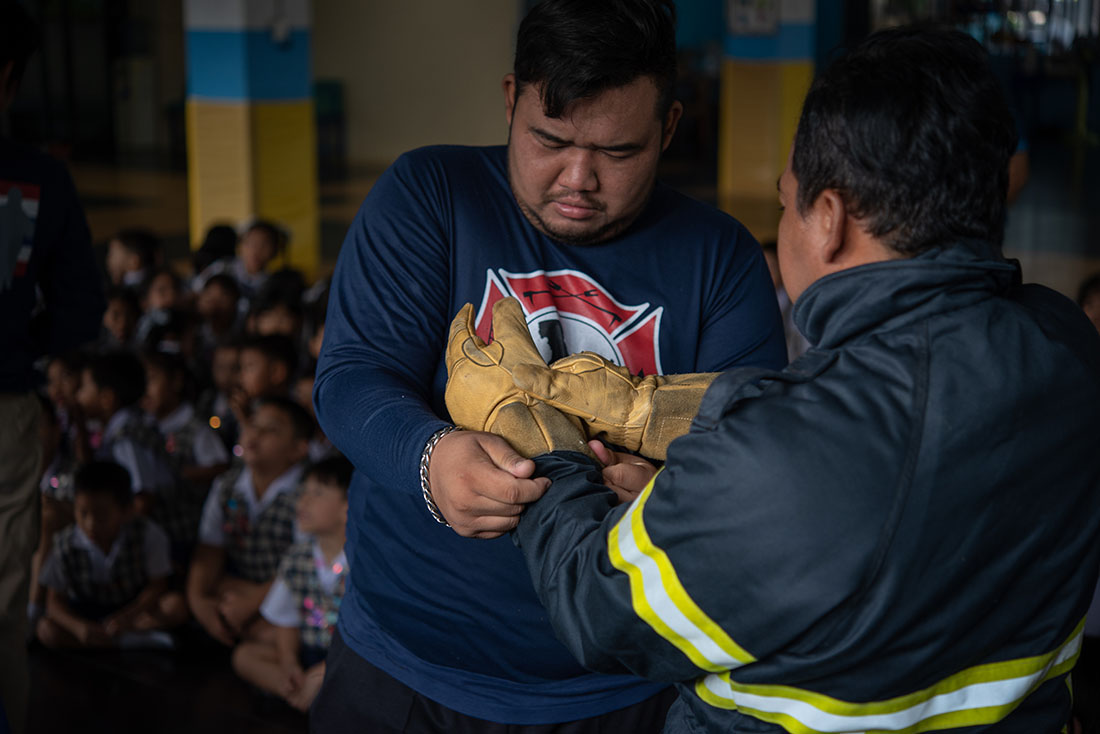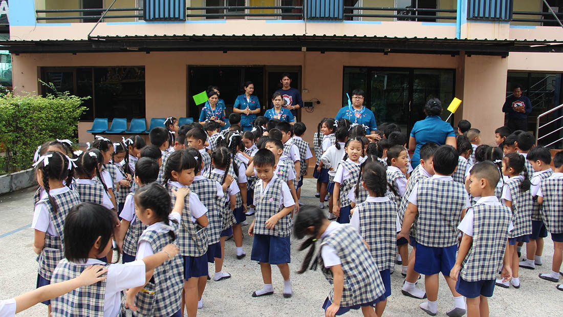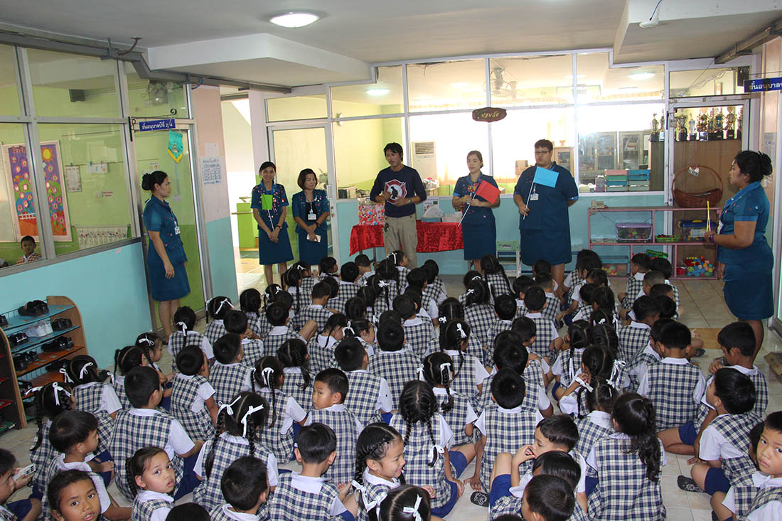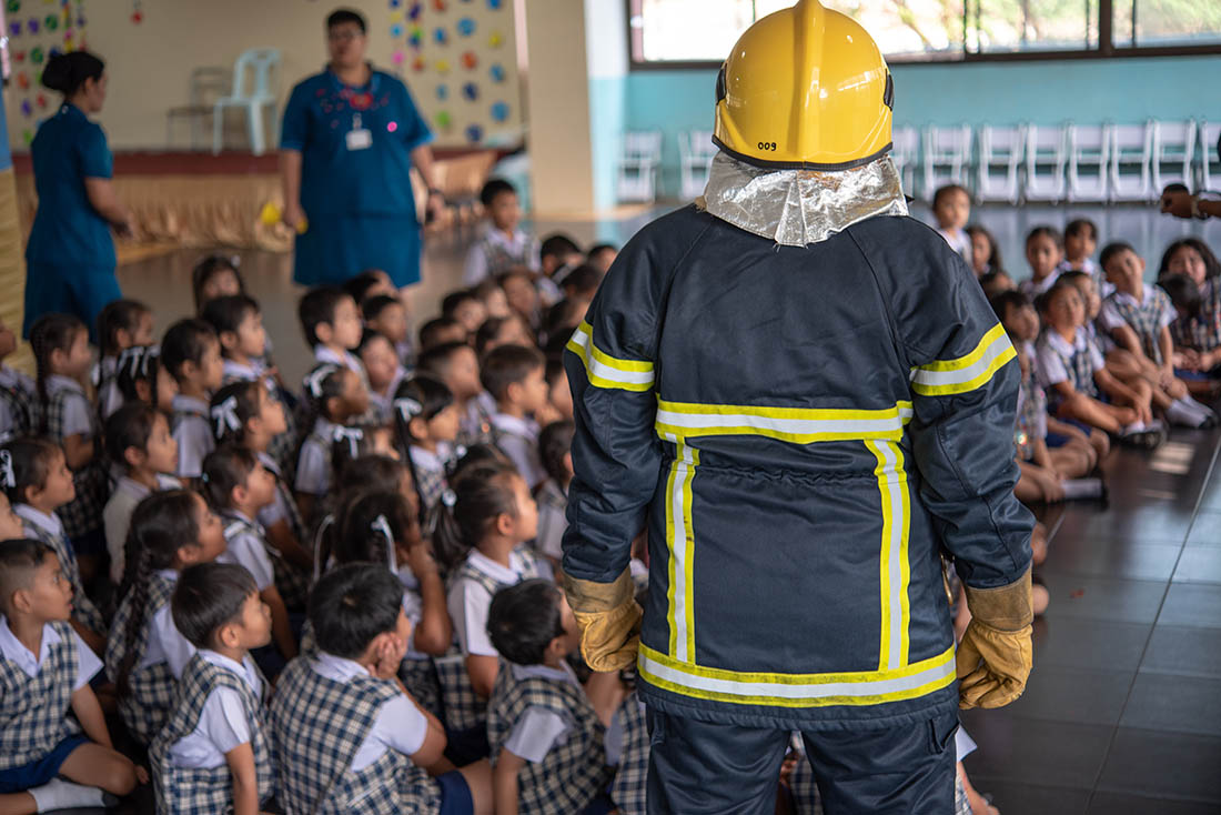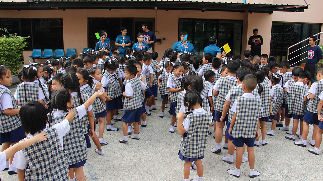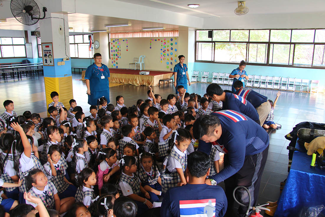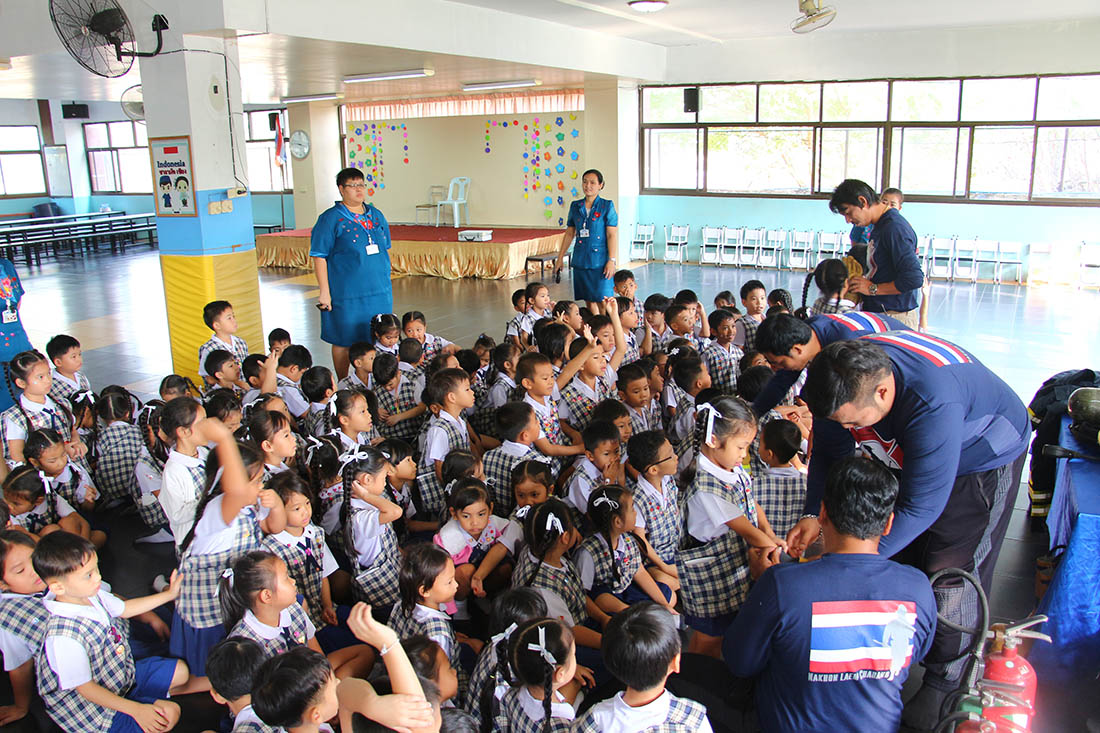 ซ้อมแผนป้องกันอัคคีภัยระดับชั้นอนุบาล (การเคลื่อนย้ายไปจุดรวมพล)2562