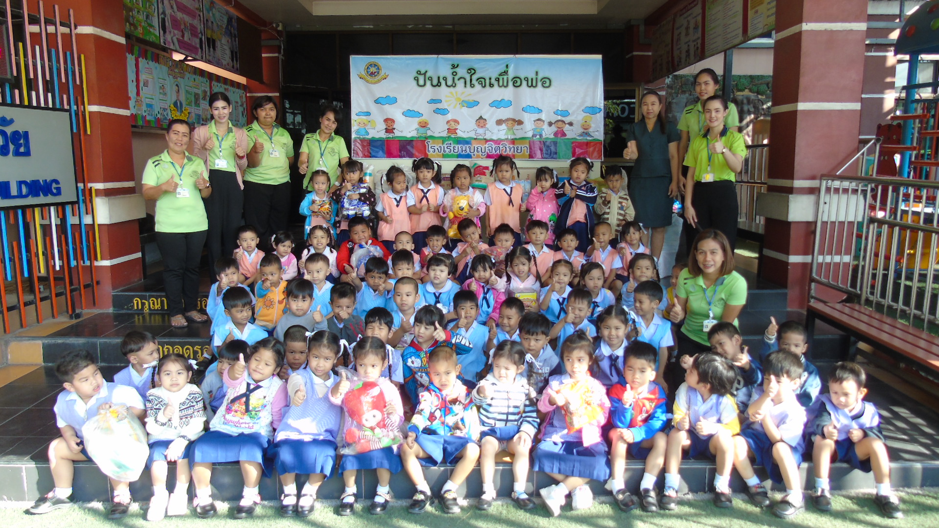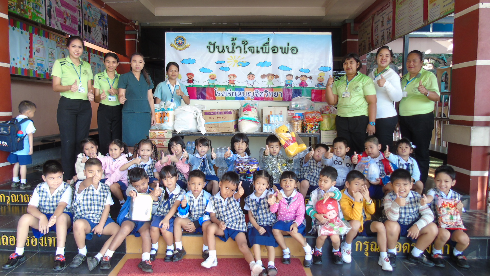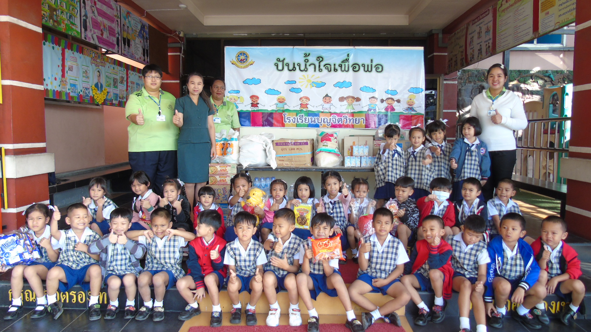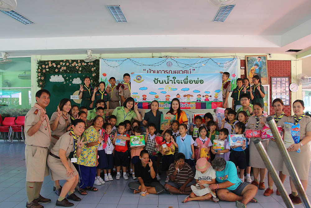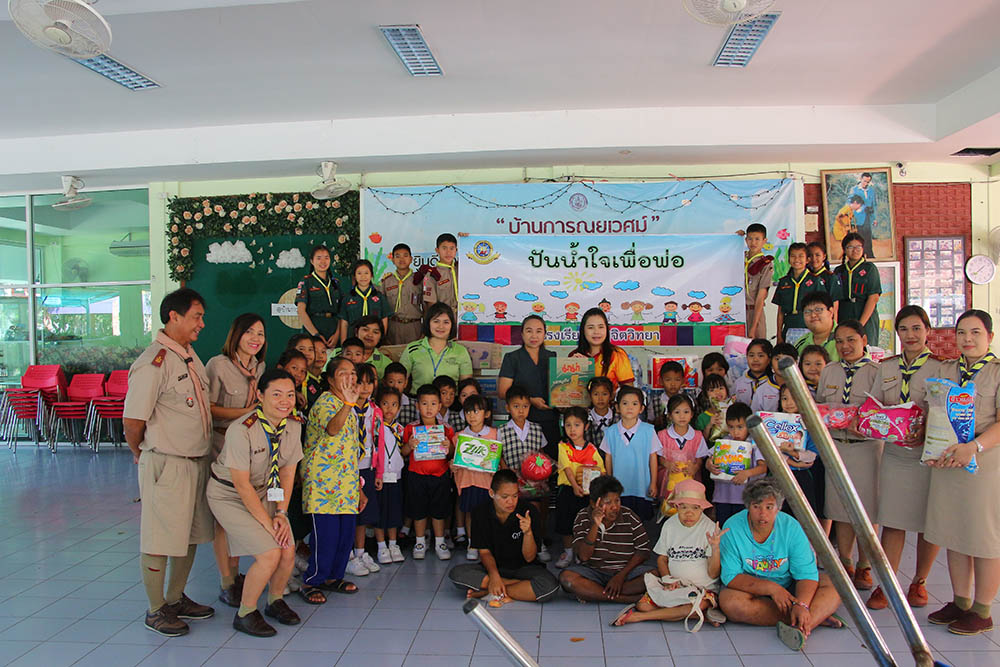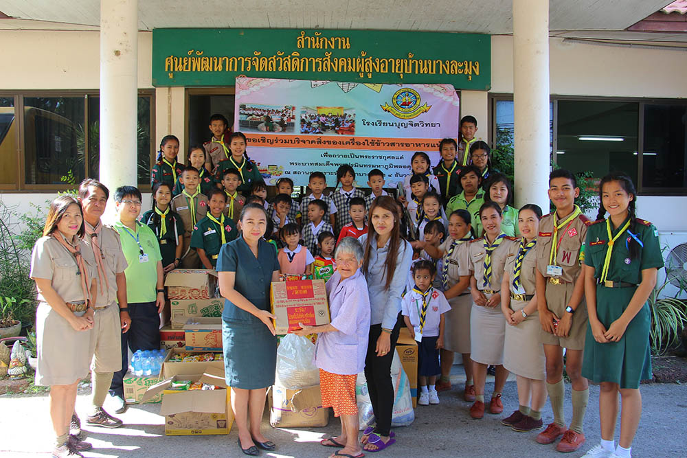 วันพุธที่ 4 ธันวาคม 2562 นางชวาลา กันทอง ผู้อำนวยการโรงเรียนบุญจิตวิทยา ได้นำคณะครู นักเรียน ตัวแทนสมาคมครูผู้ปกครองนักเรียนและศิษย์เก่า โรงเรียนบุญจิตวิทยา นำข้าวสาร อาหารแห้ง และน้ำดื่ม ที่ได้รับความร่วมมือจากการบริจาค ไปมอบให้กับสถานสงเคราะห์ บ้านการุณยเวศน์ และศูนย์พัฒนาการจัดสวัสดิการสังคมผู้สูงอายุบ้านบางละมุง อ.ศรีราชา จ.ชลบุรี เพื่อถวายเป็นพระราชกุศล น้อมรำลึกในพระมหากรุณาธิคุณของพระบาทสมเด็จพระปรมินทรมหาภูมิพลอดุลยเดช บรมนาถบพิตร เพื่อให้เด็กได้รู้จักแบ่งปัน ช่วยเหลือผู้อื่น และมีจิตสาธารณะ และเช้าวันพฤหัสบดีที่ 5 ธันวาคม 2562 ได้มีตัวแทนคณะครู เข้าร่วมพิธีทำบุญตักบาตรถวายเป็นพระราชกุศลแด่พระบาทสมเด็จพระปรมินทรมหาภูมิพลอดุลยเดช บรมนาถบพิตร เนื่องในวันคล้ายวันเฉลิมพระชนมพรรษาพระบาทสมเด็จพระปรมินทรมหาภูมิพลอดุลยเดช บรมนาถบพิตร อีกทั้งยังเป็น ณ สวนสุขภาพเทศบาลนครแหลมฉบัง