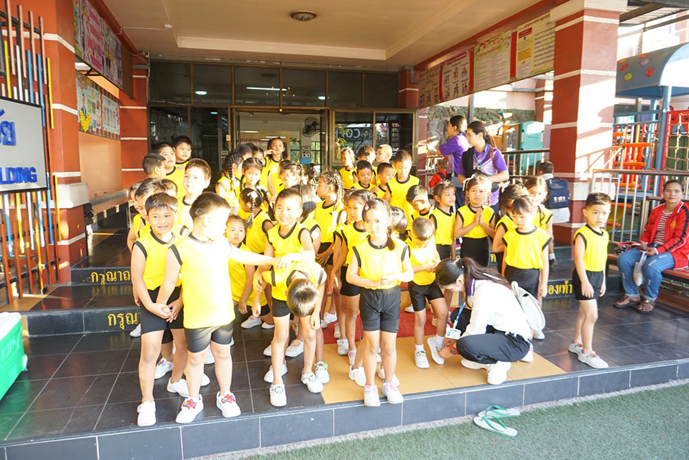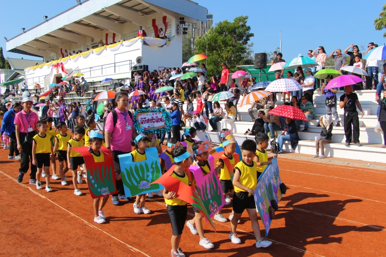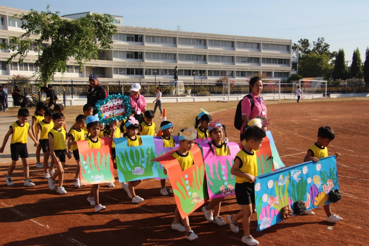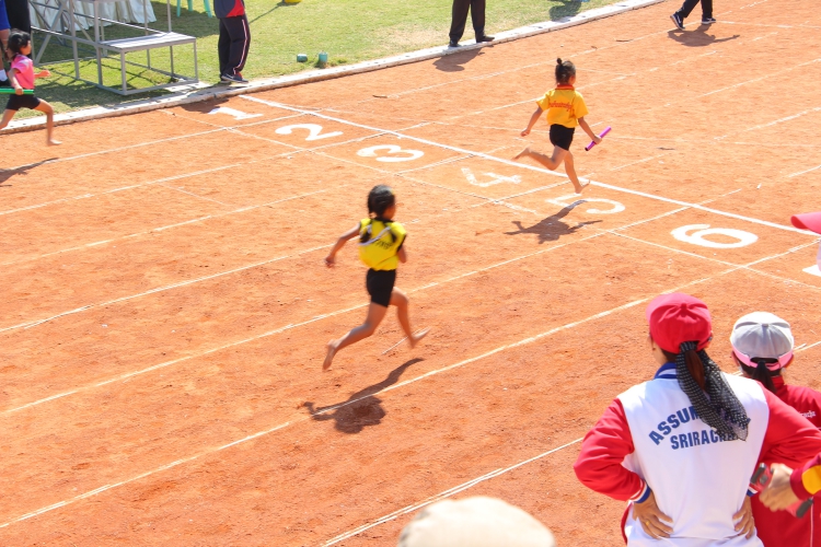 ณ สนามสิรินธร โรงเรียนอัญสัมชัญศรีราชา จังหวัดชลบุรี โดยมีหัวหน้าแผนกปฐมวัยและคณะครูปฐมวัย เป็นครูผู้ฝึกสอนและนำนักกีฬาระดับปฐมวัย เข้าร่วมพิธีเปิดการแข่งขัน และร่วมการแข่งขันกีฬา