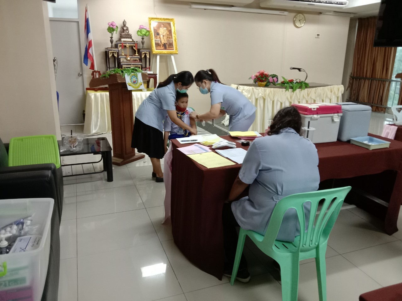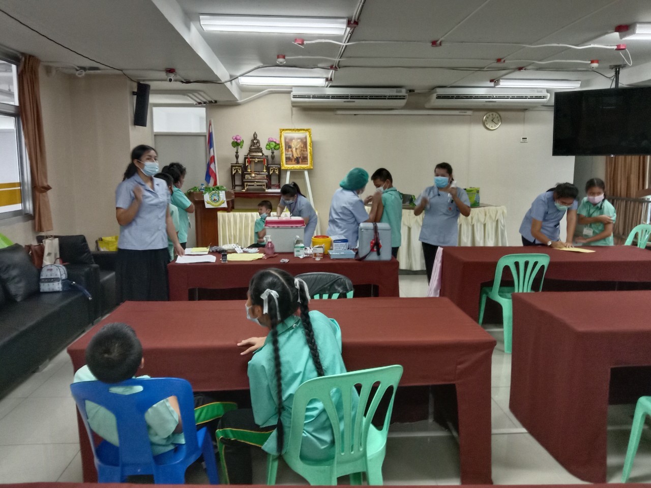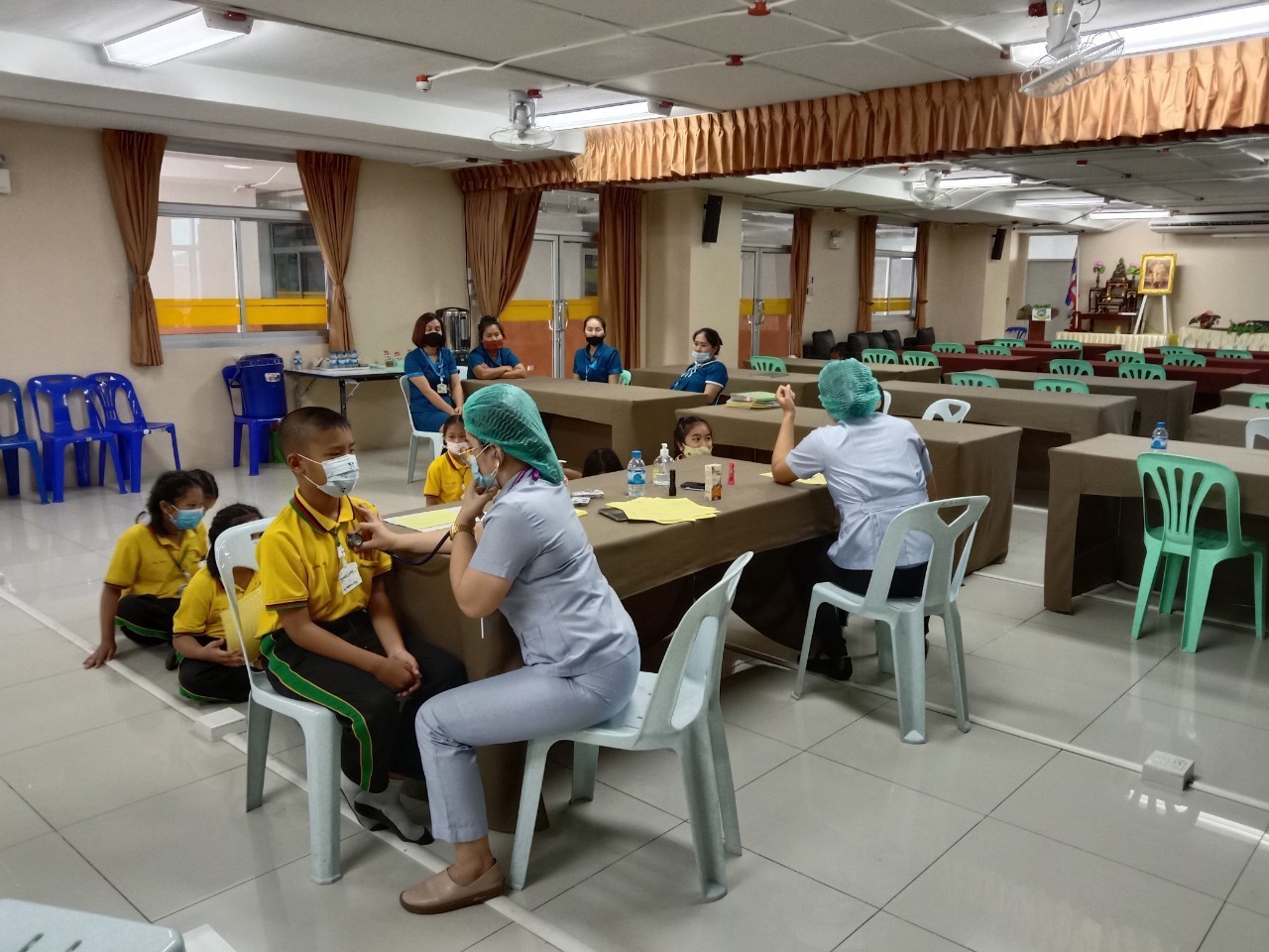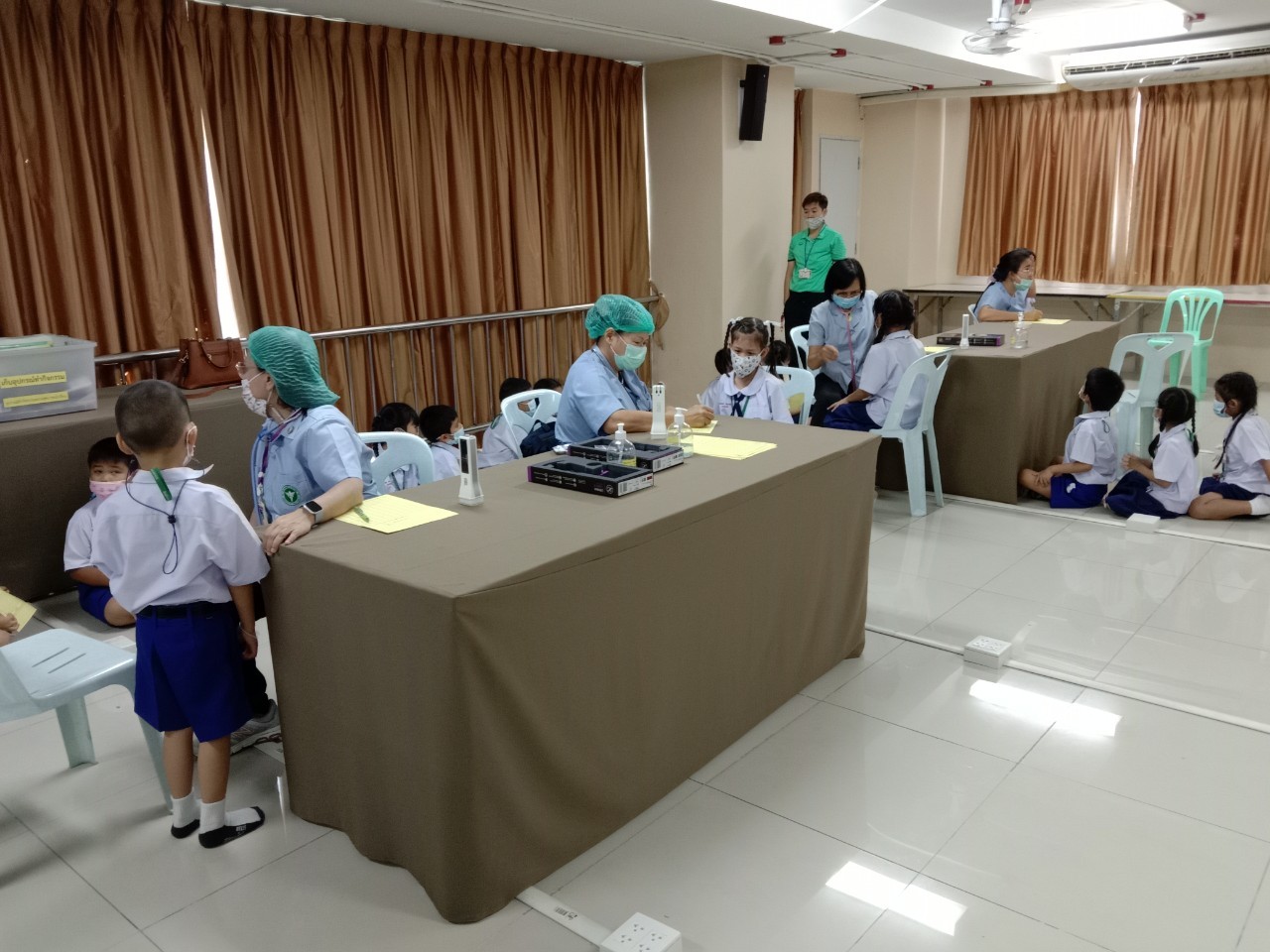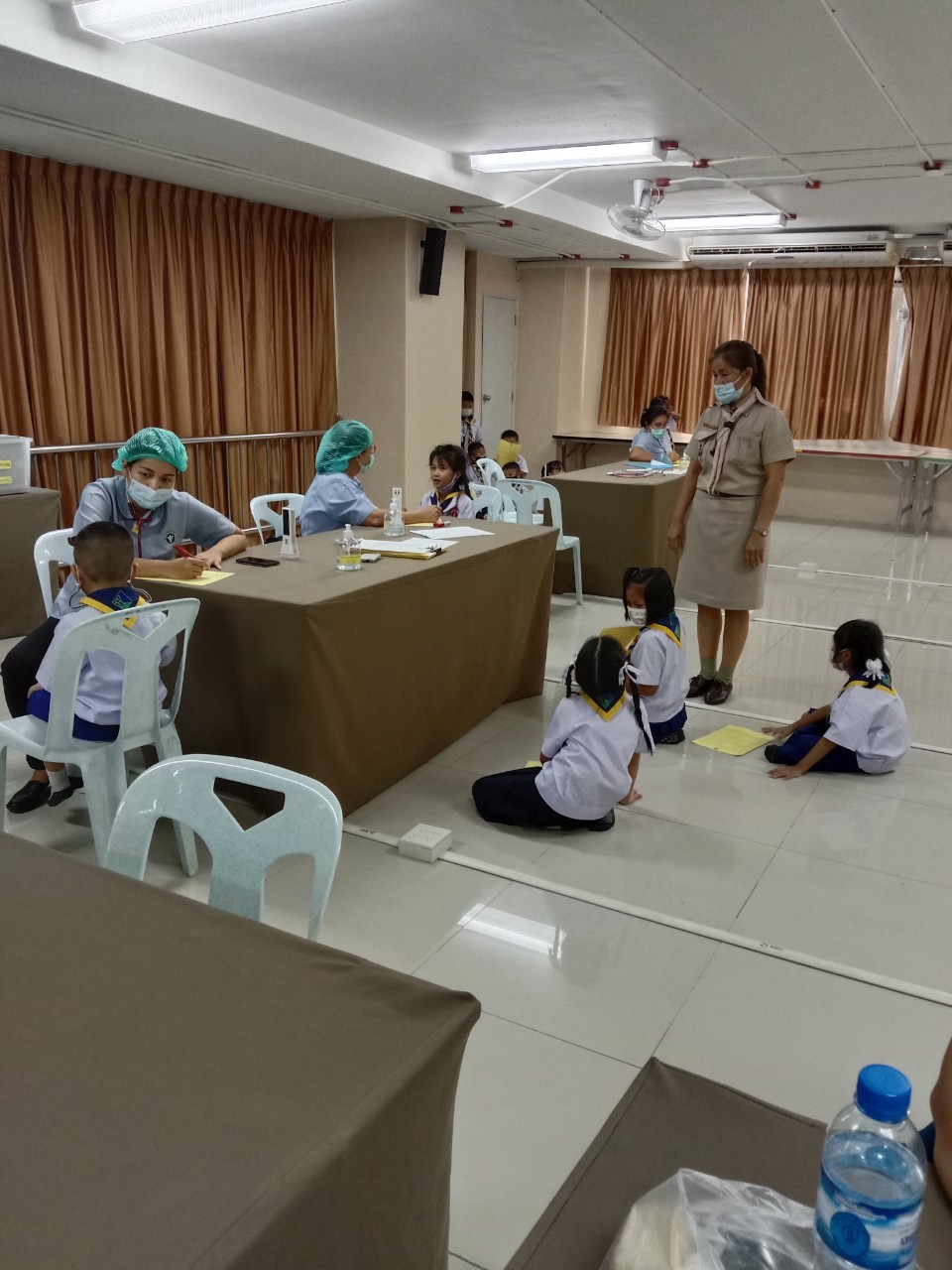 วันที่11 ,16, 17 กันยายน 2563 เจ้าหน้าที่สาธารณสุขโรงพยาบาลแหลมฉบัง ตรวจสุขอนามัย วัดสายตา ชั้นประถมปีที่1-4 และ ฉีดวัคซีนนักเรียนชั้นประถมปีที่ 1 และ 6