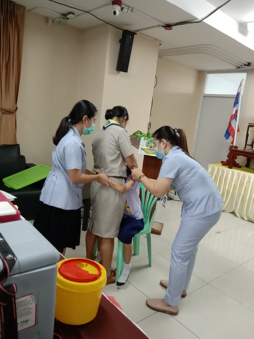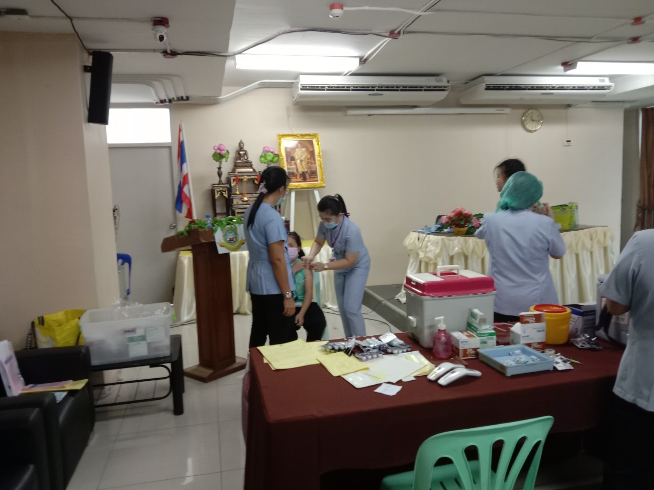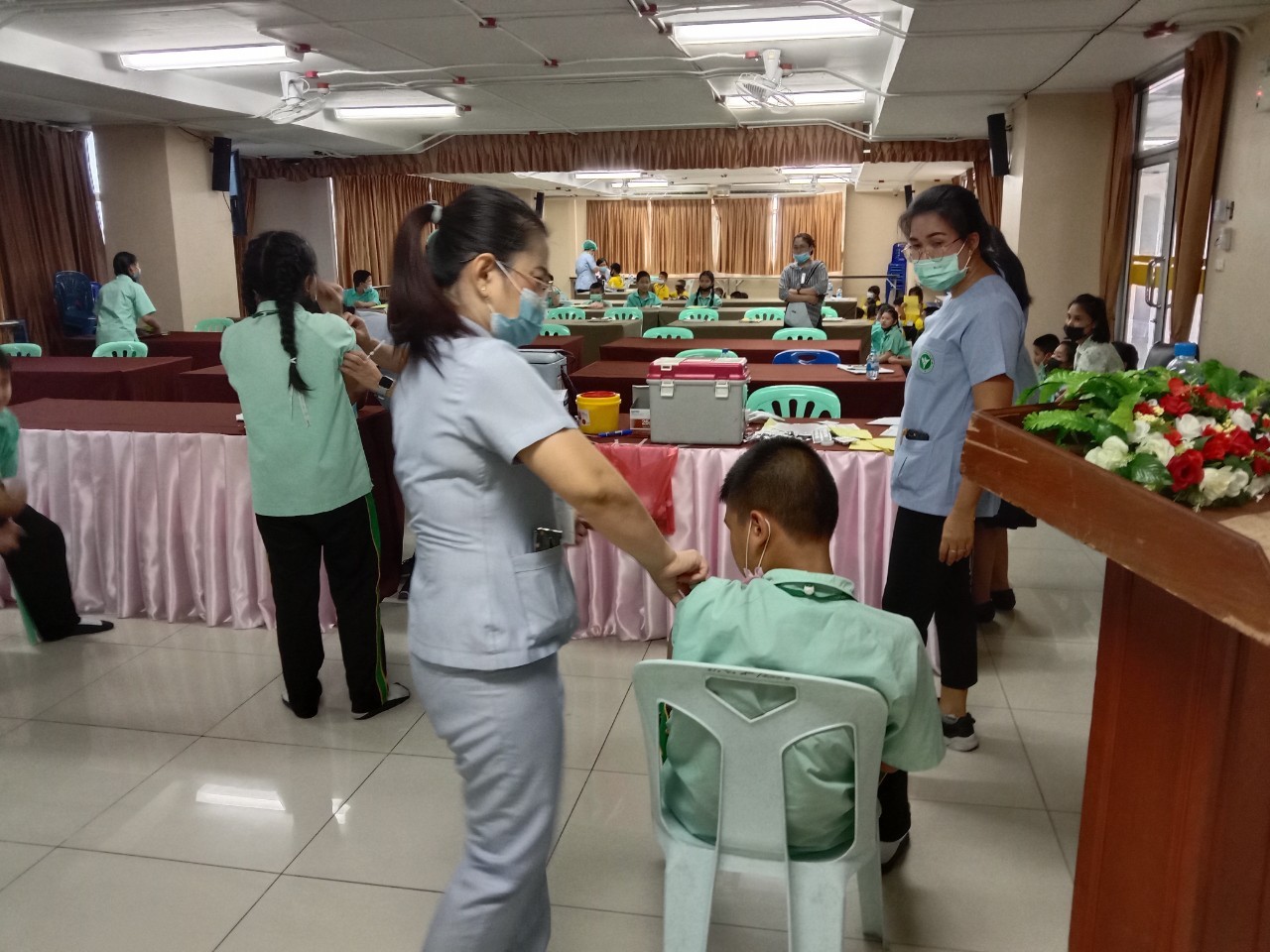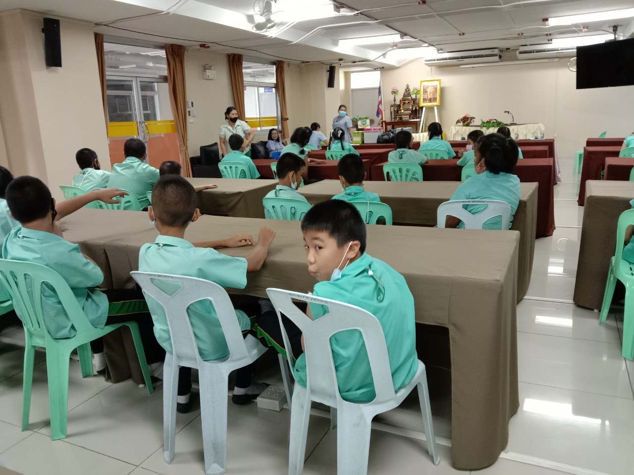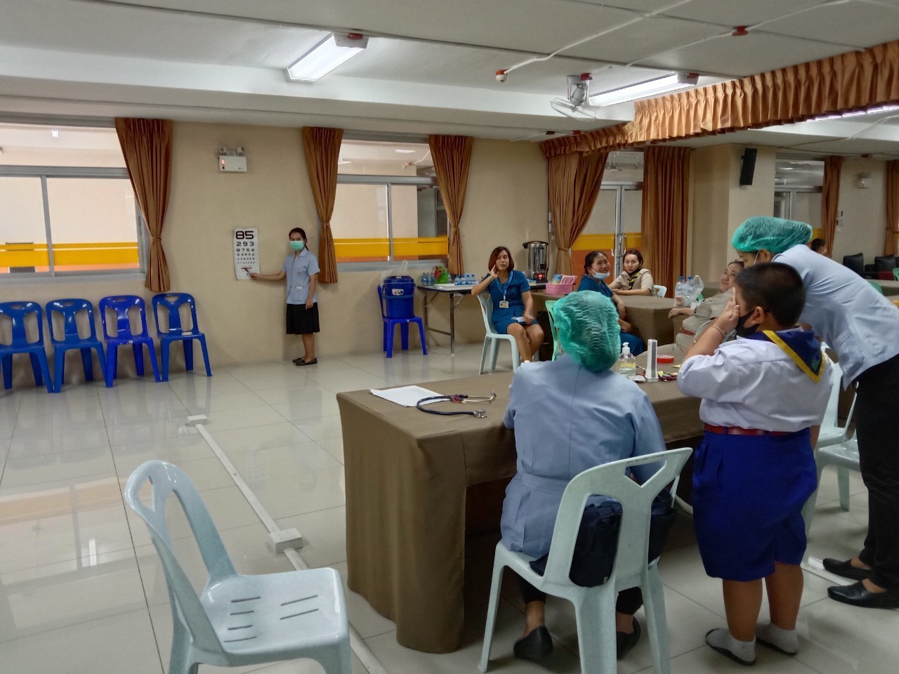 วันที่11 ,16, 17 กันยายน 2563 เจ้าหน้าที่สาธารณสุขโรงพยาบาลแหลมฉบัง ตรวจสุขอนามัย วัดสายตา ชั้นประถมปีที่1-4 และ ฉีดวัคซีนนักเรียนชั้นประถมปีที่ 1 และ 6