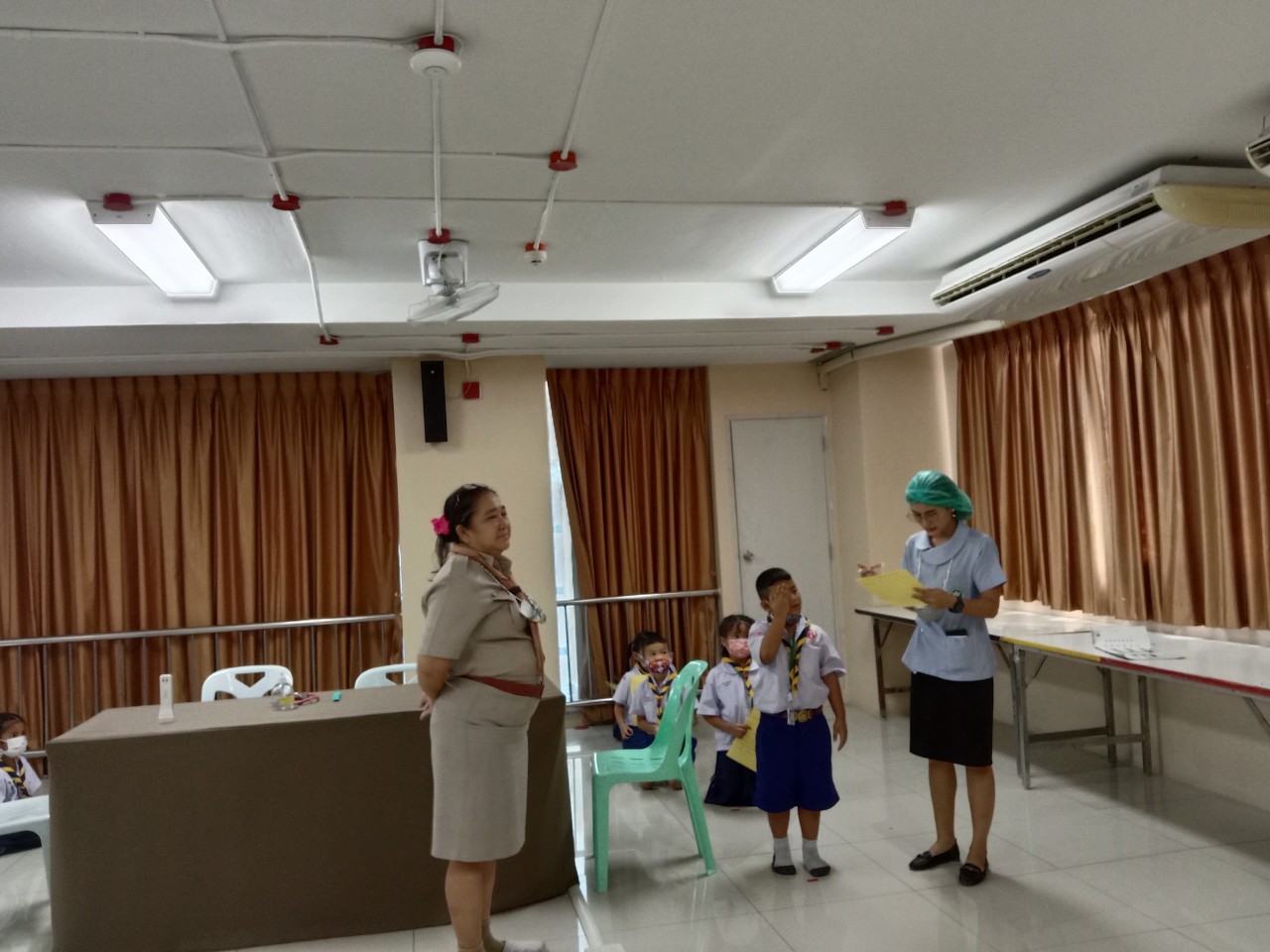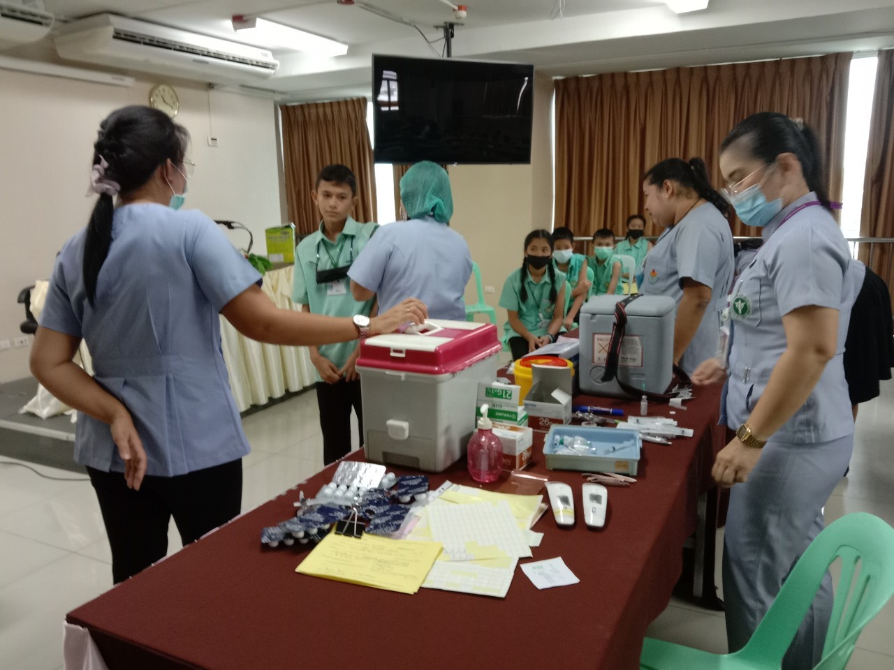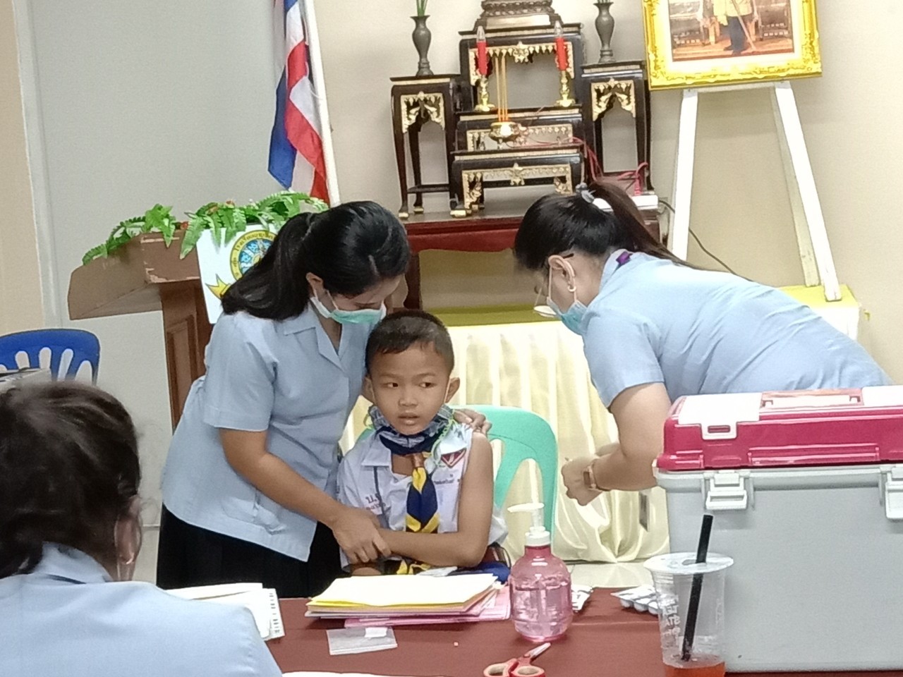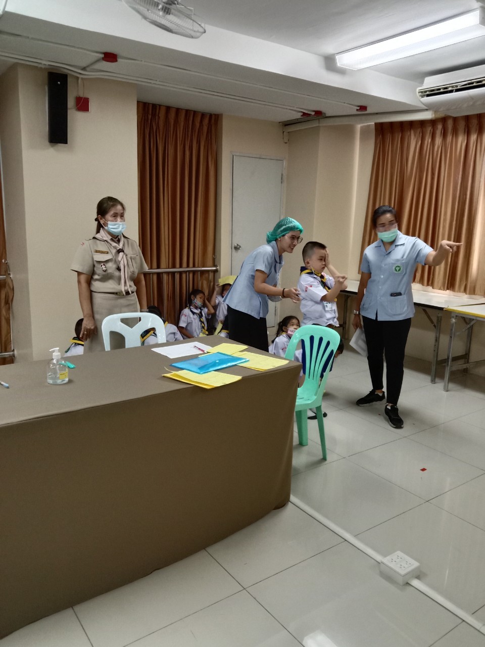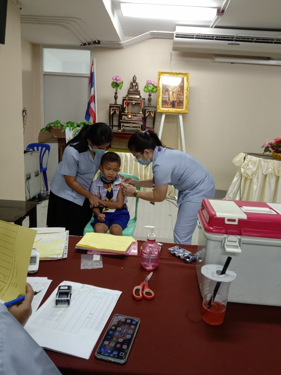 วันที่11 ,16, 17 กันยายน 2563 เจ้าหน้าที่สาธารณสุขโรงพยาบาลแหลมฉบัง ตรวจสุขอนามัย วัดสายตา ชั้นประถมปีที่1-4 และ ฉีดวัคซีนนักเรียนชั้นประถมปีที่ 1 และ 6
