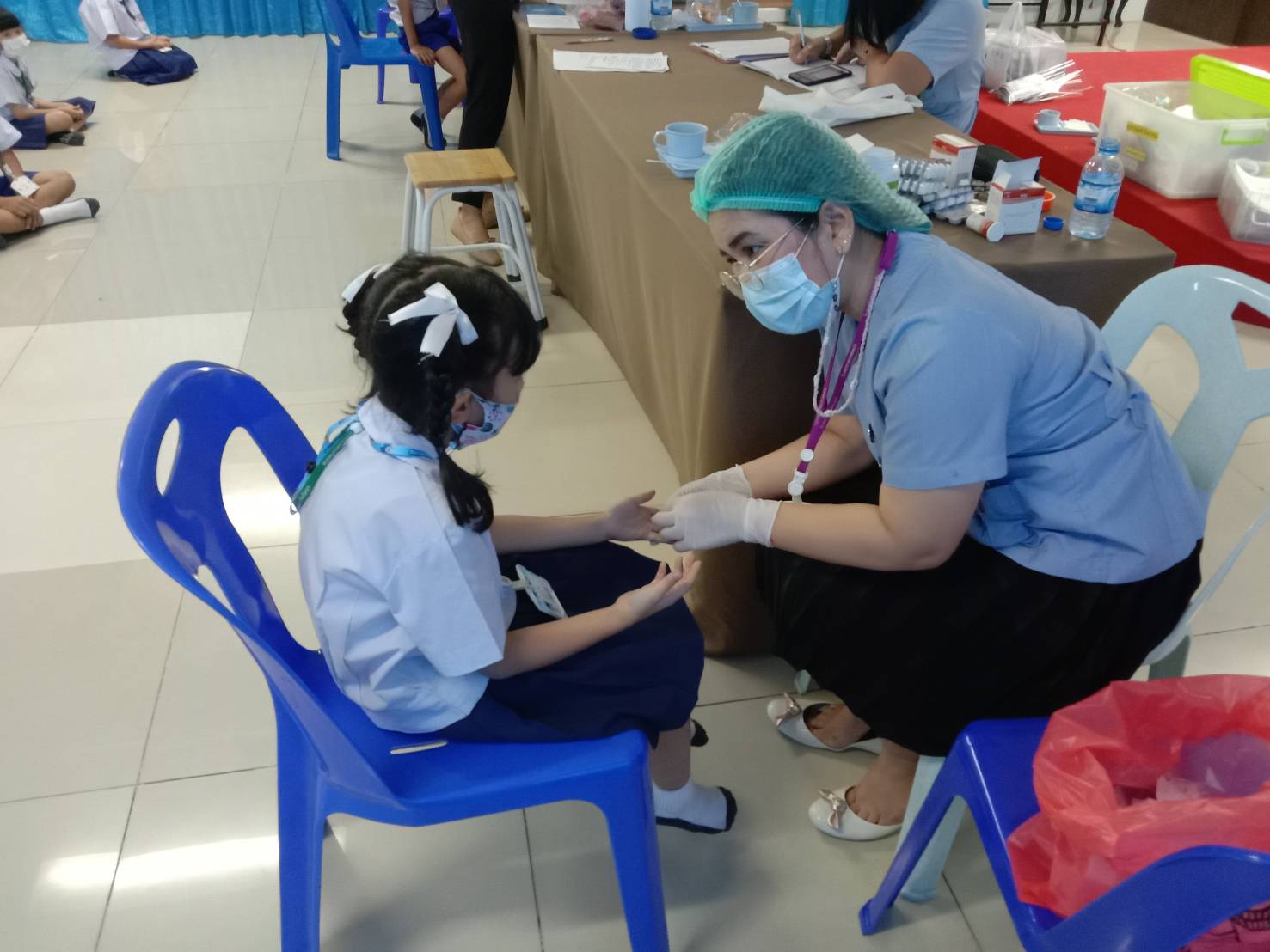 วันที่ 1 มีนาคม 2564 เจ้าหน้าที่สาธารณสุขโรงพยายาลแหลมฉบังเจาะเลือดคัดกรองภาวะโลหิตจาง นักเรียนชั้นประถมศึกษาปีที่1 และมอบยาเสริมธาตุเหล็กให้แก่นักเรียนชั้นประถมศึกษาปีที่ 1- 6 ณ โรงเรียนบุญจิตวิทยา