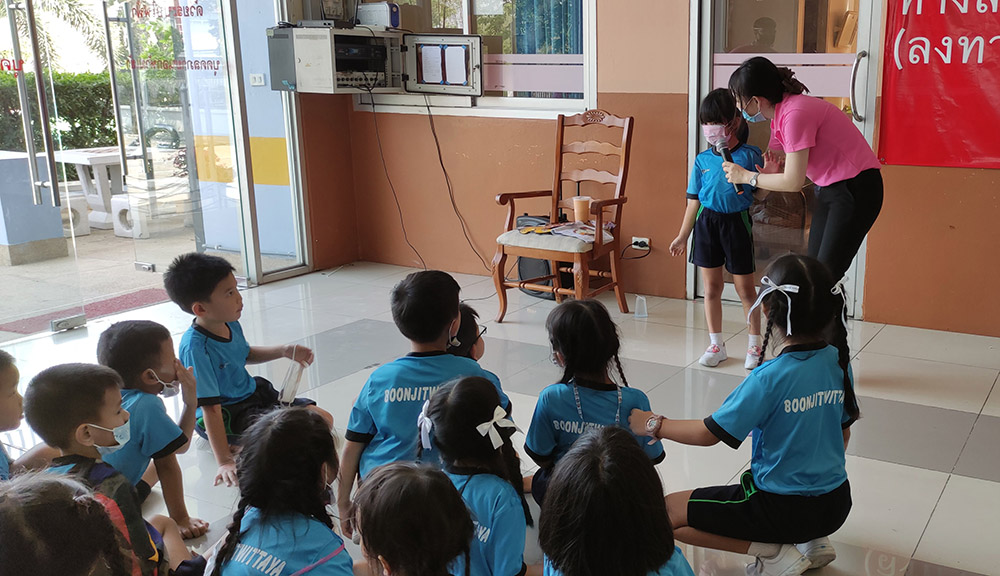 วันศุกร์ที่ 19 มีนาคม 2564 โรงเรียนบุญจิตวิทยา จัดกิจกรรม English Camp ระดับปฐมวัย(อนุบาล 3) ส่งเสริมการใช้ภาษาของเด็ก นักเรียนระดับปฐมวัย เพื่อส่งเสริมให้เด็กๆได้แสดงออก ด้านการใช้ภาษา และได้ทำกิจกรรมร่วมกับครูชาวต่างชาติอย่างมั่นใจ และใช้กิจกรรมที่สร้างสรรค์เพื่อให้เด็กๆสนุกสนานกับการทำกิจกรรมและได้ร่วมทำกิจกรรมทุกๆคน