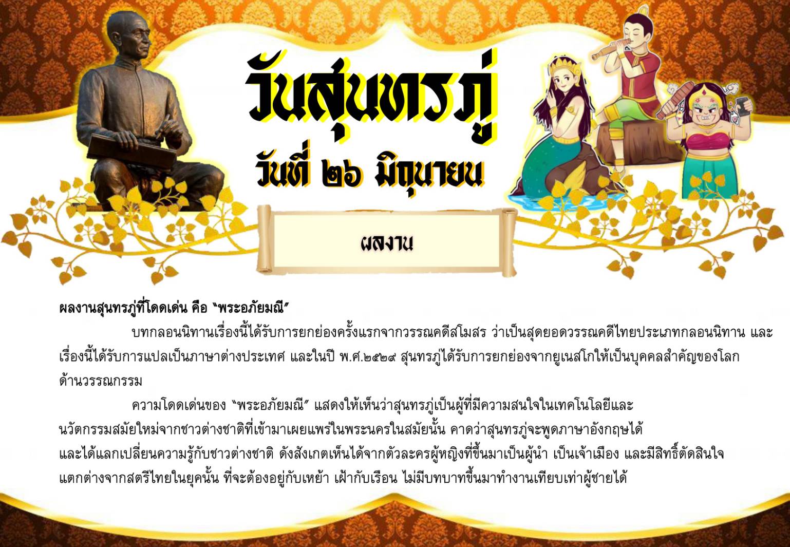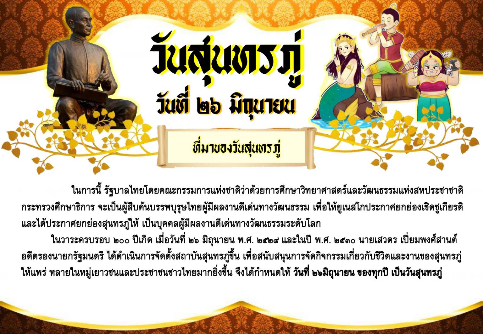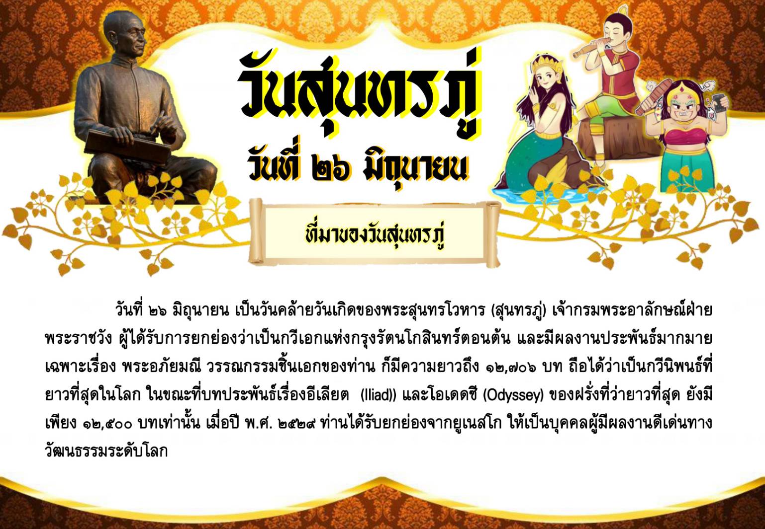 วันสุนทรภู่ วันที่ ๒๖ มิถุนายน