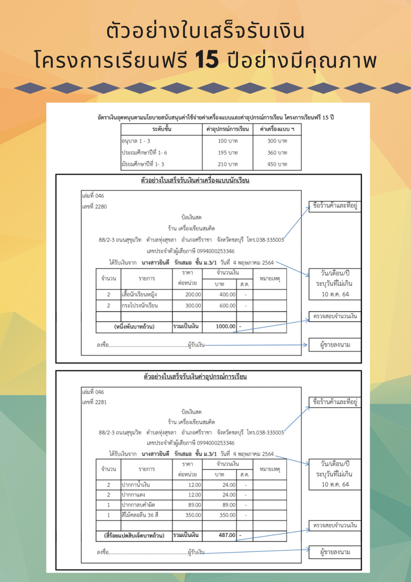 การรับสิทธิ์สนับสนุน โครงการเรียนฟรี 15 ปีอย่างมีคุณภาพ