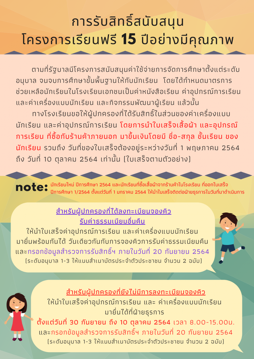 Link การรับสิทธิ์ค่าเครื่องแบบนักเรียน และค่าอุปกรณ์การเรียน