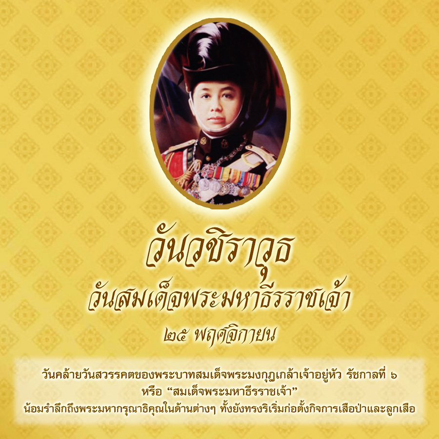 “วันวชิราวุธ” หรือ “วันสมเด็จพระมหาธีรราชเจ้า” ถูกกำหนดให้ตรงกับวันที่ ๒๕ พฤศจิกายน ของทุกปี เนื่องจากเป็นวันคล้ายวันสวรรคตของพระบาทสมเด็จพระมงกุฎเกล้าเจ้าอยู่หัว รัชกาลที่ ๖ หรือ “สมเด็จพระมหาธีรราชเจ้า” เพื่อเทิดพระเกียรติและน้อมรำลึกถึงพระมหากรุณาธิคุณของพระองค์ ซึ่งทรงประกอบพระราชกรณียกิจสำคัญๆ อันเป็นประโยชน์มากมายมหาศาลต่อประเทศชาติ ทั้งในด้านการคมนาคม การปกครอง ด้านศิลปวัฒนธรรม และด้านวรรณคดี อีกทั้งพระองค์ยังทรงเป็นผู้ริเริ่มก่อตั้งกิจการเสือป่าและลูกเสือ เพื่อฝึกให้ประชาชนมีความรู้ ความสามารถในการป้องกันตัว ดูแลตัวเอง รวมถึงหมู่บ้านหรือชุมชนของตนเองได้