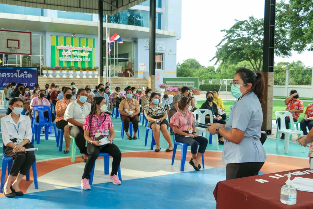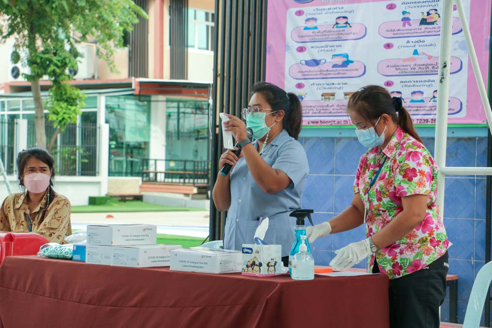 25 พฤศจิกายน 2564 เวลา14.00-16.00น. ทางโรงเรียนบุญจิตวิทยา ได้ร่วมรณรงค์การให้ความรู้ในการใช้ชุดตรวจ ATK แก่คณะครูและบุคลากร โดยมีนางชวาลา กันทอง ผู้อำนวยการโรงเรียน เป็นประธานกล่าวต้อนรับ และเข้าร่วมรับฟังการอบรม ซึ่งทางโรงเรียนได้รับความอนุเคราะห์ จากเจ้าหน้าที่สาธารณสุขอำเภอศรีราชา คุณอุทัยวรรณ ทองชุม นักวิชาการสาธารณสุขปฏิบัติการ เป็นผู้มาให้ความรู้และแนะนำ การใช้ชุดตรวจ ATK
