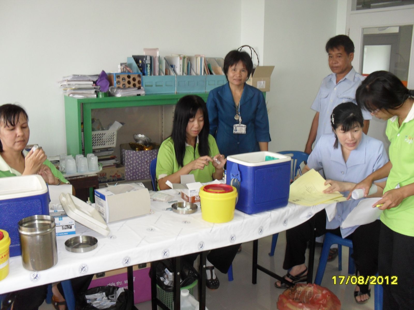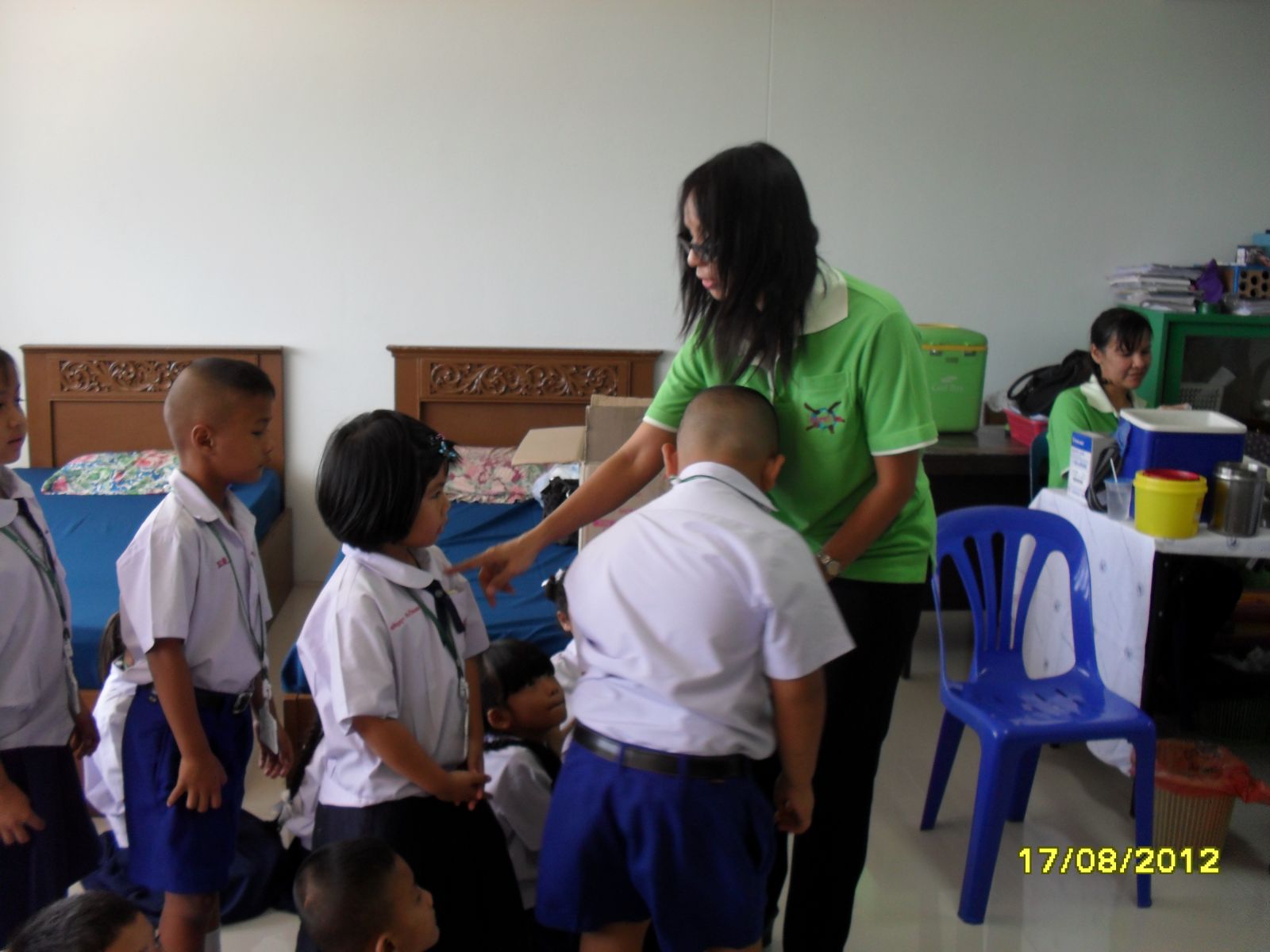 เมื่อวันที่17 ก.ค. 55 ฝ่ายบริการ โดย คุณครูลัดดาวัลย์ สืบจากเทียม รองผู้อำนวยการ และคณะเจ้าหน้าทีสาธารณสุข รพ.อ่าวอุดม ตรวจสุขภาพและบริการฉีดวัคซีนป้องกันโรคคอตีบ บาดทะยัก หัด หัดเยอรมัน คางทูม วัณโรค และหยอดยาโปลิโอ ... ภาพ / ข่าวโดยสนธยา
